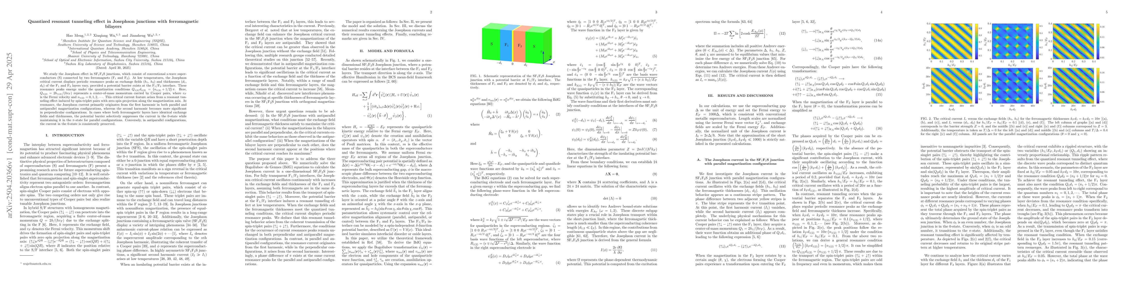 The paper presents a detailed analysis of quantized resonant tunneling effect in Josephson junctions with ferromagnetic bilayers, revealing new insights into the role of spin-triplet pairs and their contribution to the Josephson current.