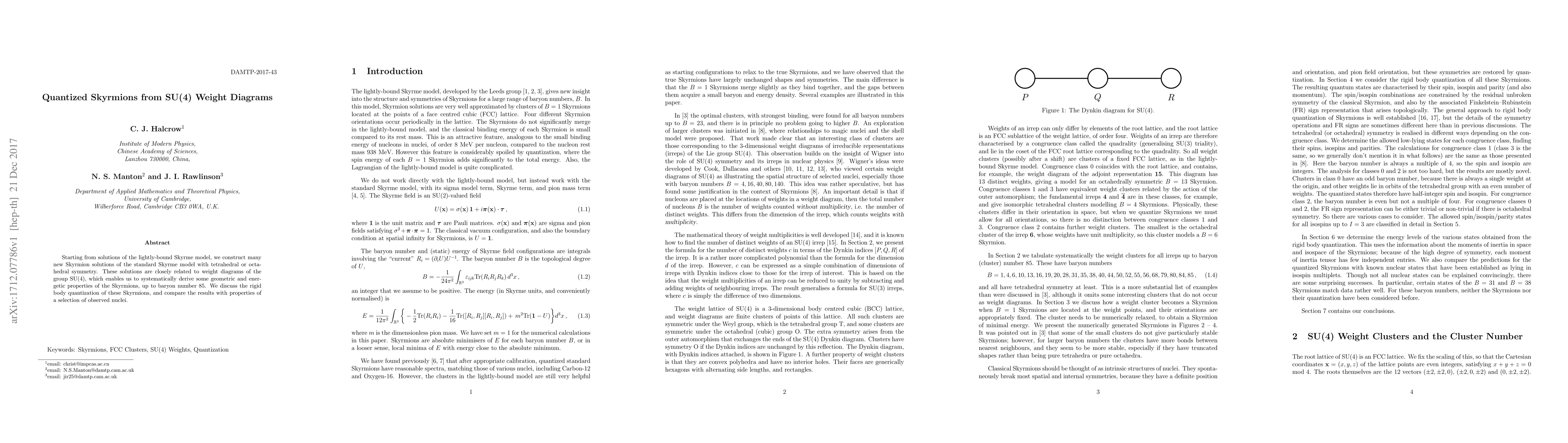 This paper constructs new Skyrmion solutions with tetrahedral or octahedral symmetry from the standard Skyrme model, linking them to SU(4) weight diagrams to derive their geometric and energetic properties up to baryon number 85. It also explores the rigid body quantization of these Skyrmions and compares their characteristics with observed nuclei.