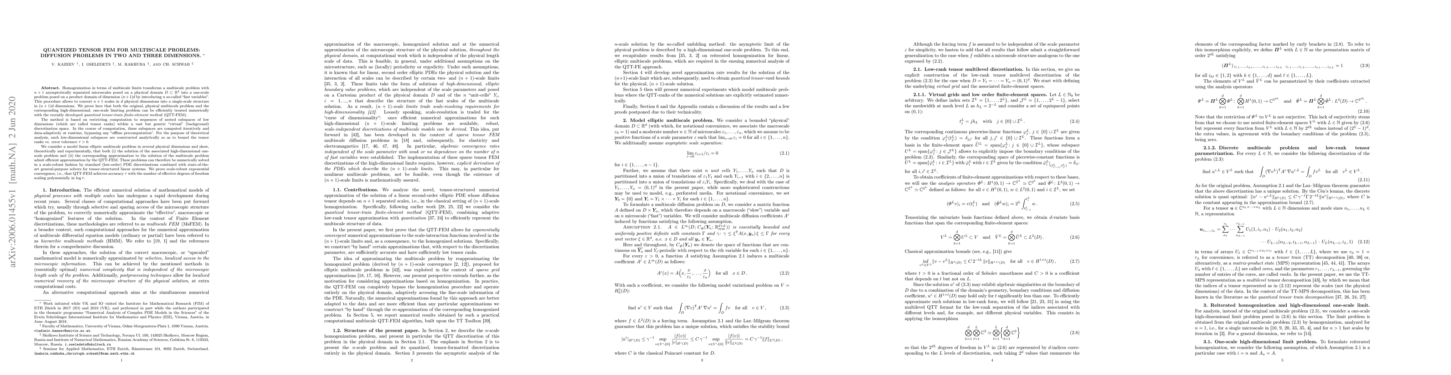 This paper introduces the quantized tensor-train finite-element method (QTT-FEM) for solving multiscale diffusion problems in two and three dimensions. The method efficiently handles the transformation of multiscale problems into a high-dimensional one-scale problem, achieving scale-robust exponential convergence with polynomial scaling of effective degrees of freedom.