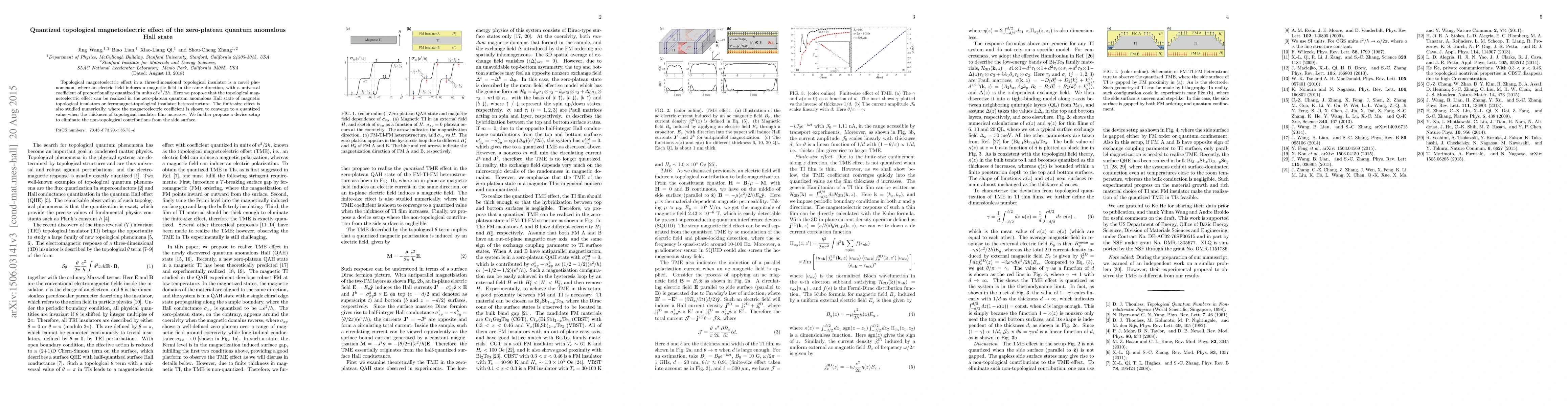 This paper proposes the realization of a quantized topological magnetoelectric effect in the zero-plateau quantum anomalous Hall state of magnetic topological insulators or heterostructures. Numerical studies show the magnetoelectric coefficient converges to a quantized value with increased film thickness, and a device setup is suggested to eliminate non-topological side surface contributions.