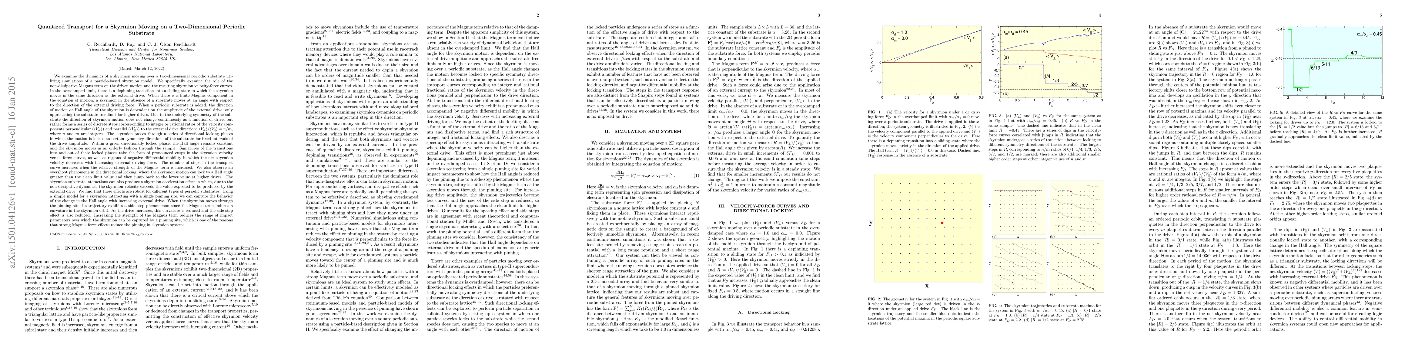 Researchers study skyrmion transport on a 2D periodic substrate, finding that the Magnus term causes discrete steps in Hall angle and leading to negative differential mobility and acceleration effects.