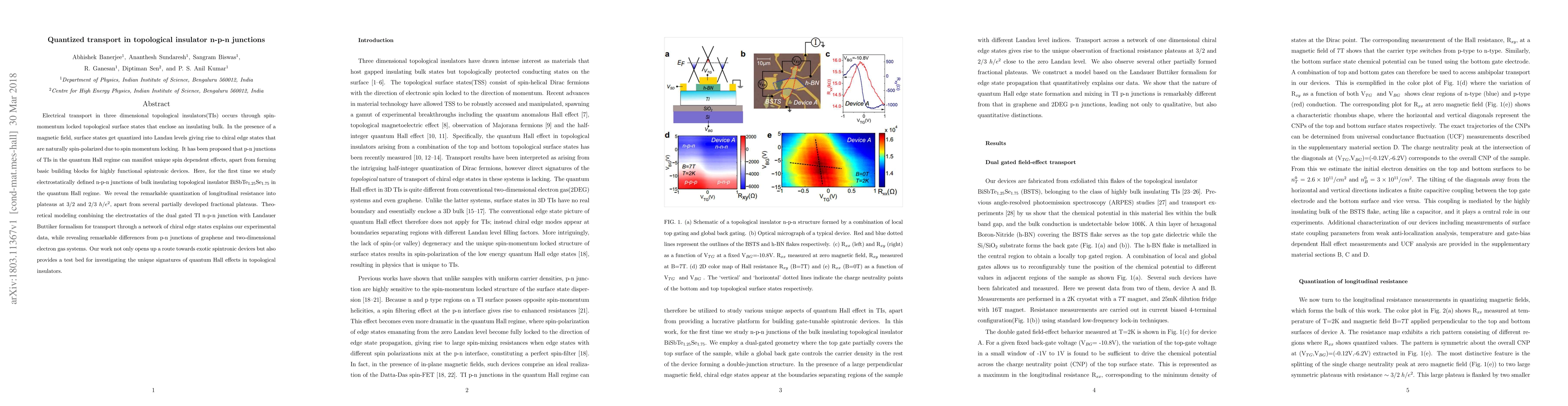 This research explores quantized transport in n-p-n junctions of the topological insulator BiSbTe$_{1.25}$Se$_{1.75}$, revealing plateaus in longitudinal resistance in the quantum Hall regime, and attributes these phenomena to the chiral edge states. Theoretical modeling aligns with experimental observations, highlighting potential for advanced spintronic applications.