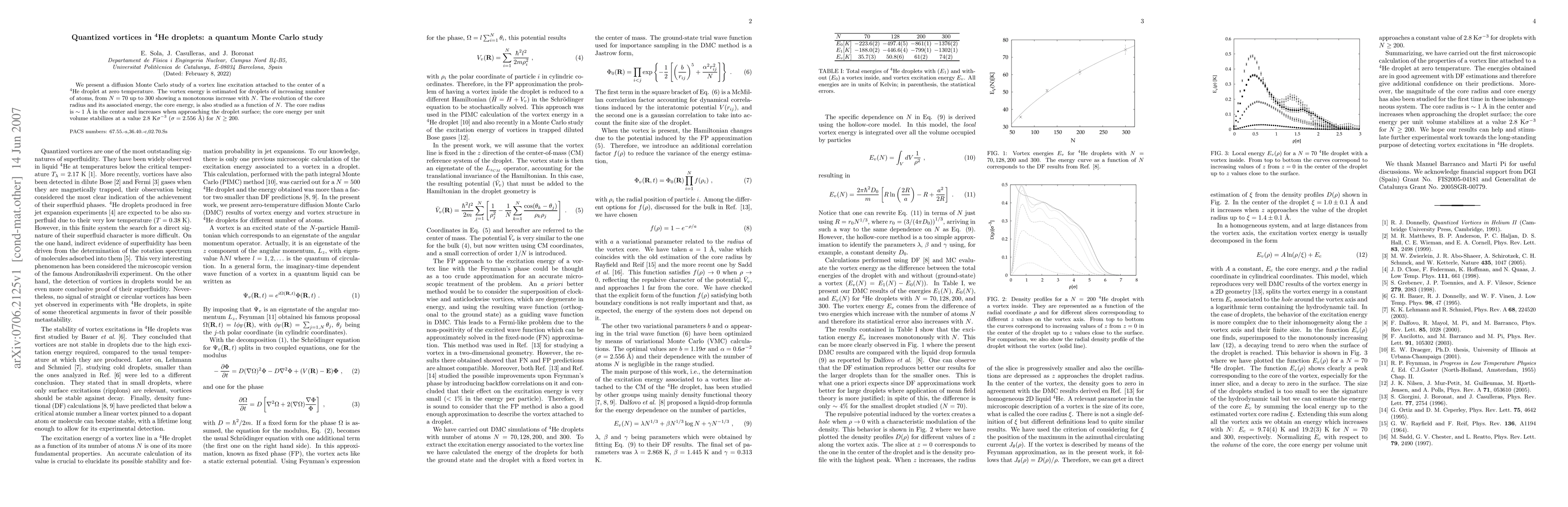 Researchers used quantum Monte Carlo simulations to study vortices in helium droplets at zero temperature, finding that vortex energy increases with the number of atoms and core radius stabilizes at around 2.8 K per cubic angstrom for large droplets.