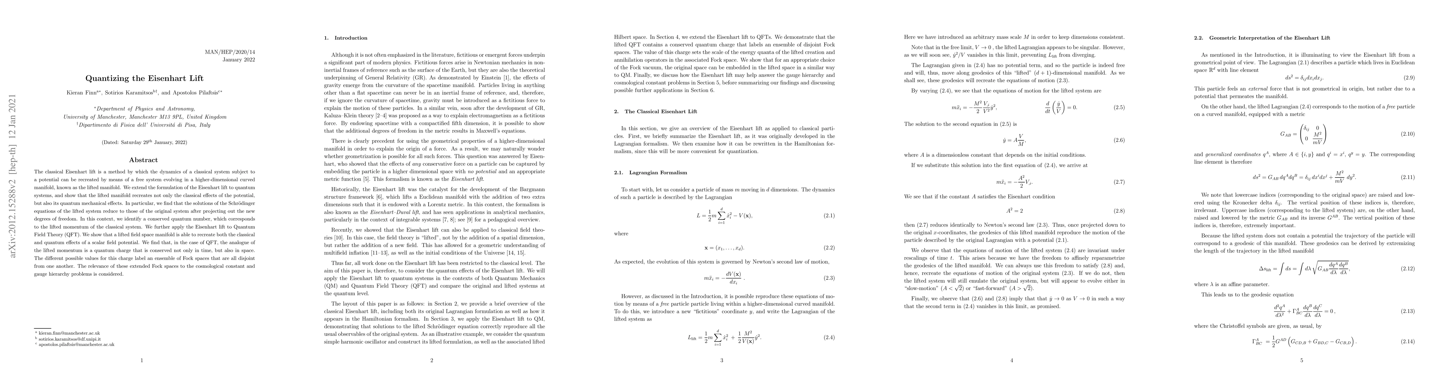 The classical Eisenhart lift is a method by which the dynamics of a classical system subject to a potential can be recreated by means of a free system evolving in a higher-dimensional curved manifold, known as the lifted manifold. We extend the formulation of the Eisenhart lift to quantum systems, and show that the lifted manifold recreates not only the classical effects of the potential, but also its quantum mechanical effects. In particular, we find that the solutions of the Schrodinger equations of the lifted system reduce to those of the original system after projecting out the new degrees of freedom. In this context, we identify a conserved quantum number, which corresponds to the lifted momentum of the classical system. We further apply the Eisenhart lift to Quantum Field Theory (QFT). We show that a lifted field space manifold is able to recreate both the classical and quantum effects of a scalar field potential. We find that, in the case of QFT, the analogue of the lifted momentum is a quantum charge that is conserved not only in time, but also in space. The different possible values for this charge label an ensemble of Fock spaces that are all disjoint from one another. The relevance of these extended Fock spaces to the cosmological constant and gauge hierarchy problems is considered.