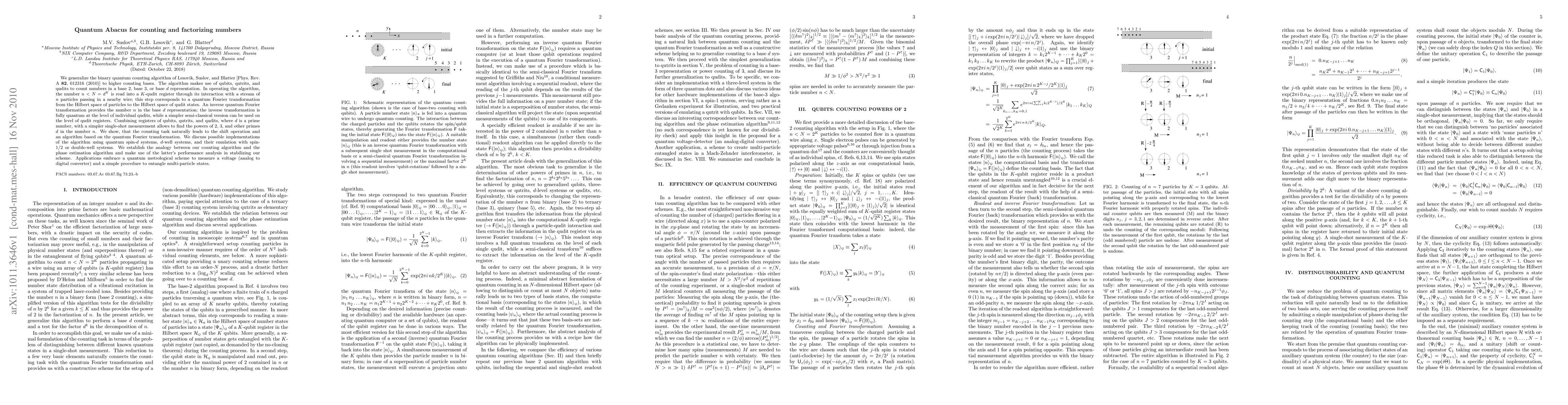 We generalize the binary quantum counting algorithm of Lesovik, Suslov, and Blatter [Phys. Rev. A 82, 012316 (2010)] to higher counting bases. The algorithm makes use of qubits, qutrits, and qudits to count numbers in a base 2, base 3, or base d representation. In operating the algorithm, the number n < N = d^K is read into a K-qudit register through its interaction with a stream of n particles passing in a nearby wire; this step corresponds to a quantum Fourier transformation from the Hilbert space of particles to the Hilbert space of qudit states. An inverse quantum Fourier transformation provides the number n in the base d representation; the inverse transformation is fully quantum at the level of individual qudits, while a simpler semi-classical version can be used on the level of qudit registers. Combining registers of qubits, qutrits, and qudits, where d is a prime number, with a simpler single-shot measurement allows to find the powers of 2, 3, and other primes d in the number n. We show, that the counting task naturally leads to the shift operation and an algorithm based on the quantum Fourier transformation. We discuss possible implementations of the algorithm using quantum spin-d systems, d-well systems, and their emulation with spin-1/2 or double-well systems. We establish the analogy between our counting algorithm and the phase estimation algorithm and make use of the latter's performance analysis in stabilizing our scheme. Applications embrace a quantum metrological scheme to measure a voltage (analog to digital converter) and a simple procedure to entangle multi-particle states.