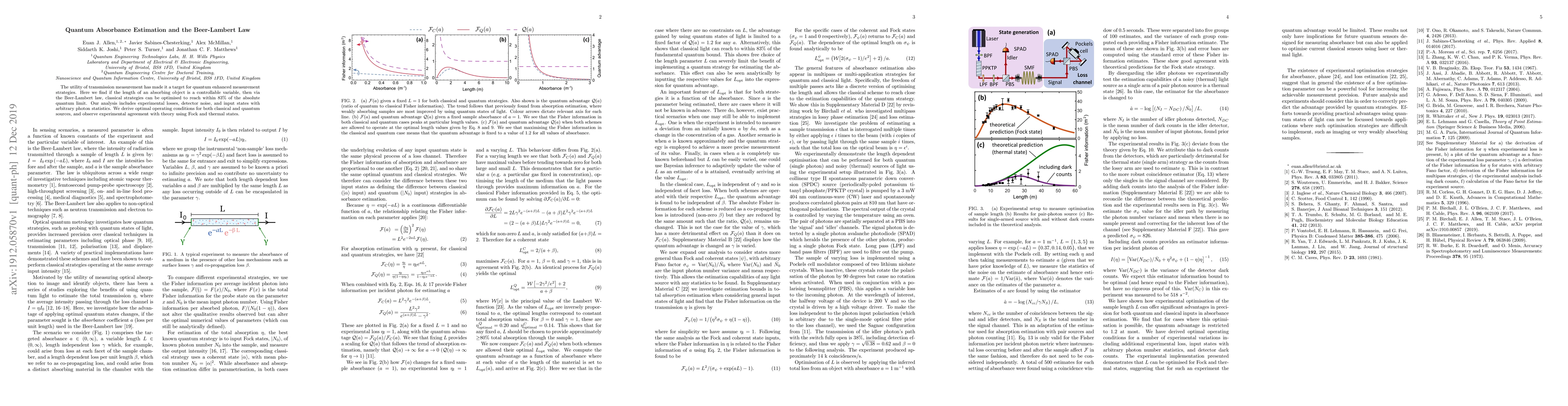 The utility of transmission measurement has made it a target for quantum enhanced measurement strategies. Here we find if the length of an absorbing object is a controllable variable, then via the Beer-Lambert law, classical strategies can be optimised to reach within 83% of the absolute quantum limit. Our analysis includes experimental losses, detector noise, and input states with arbitrary photon statistics. We derive optimal operating conditions for both classical and quantum sources, and observe experimental agreement with theory using Fock and thermal states.