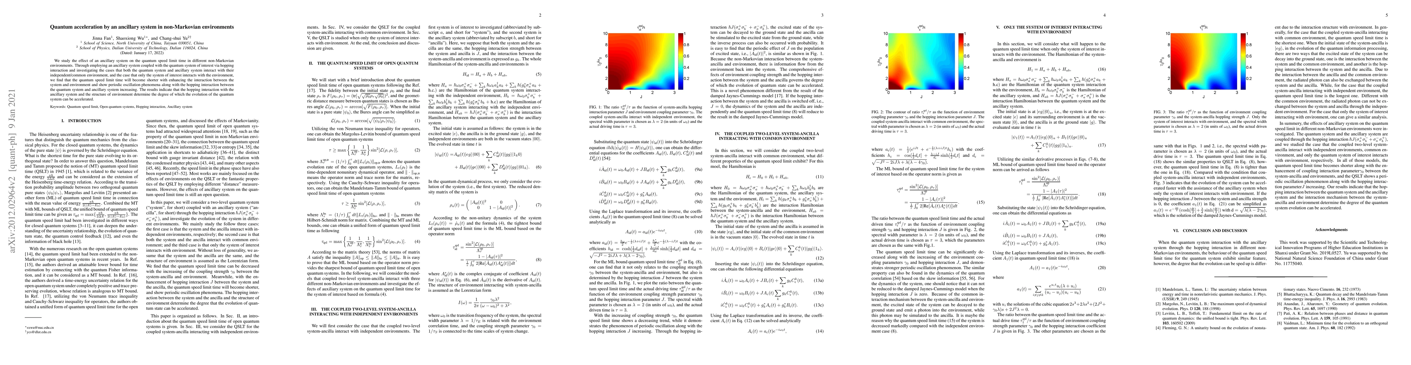 Research shows that adding an ancillary system to a quantum system can accelerate its evolution in non-Markovian environments, with the degree of acceleration determined by environment structure and interaction strength.