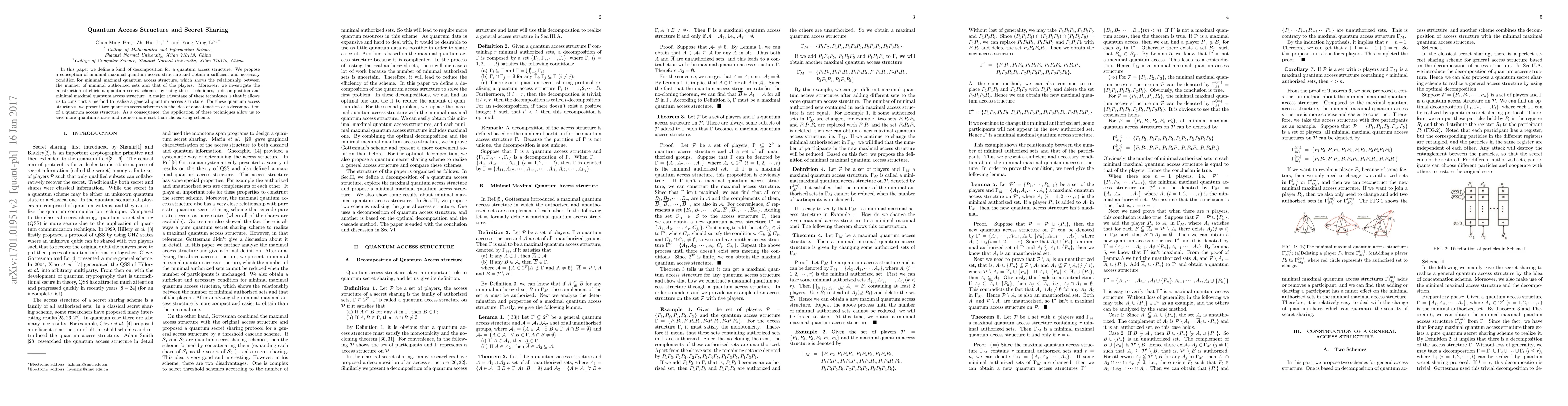In this paper we define a kind of decomposition for a quantum access structure. We propose a conception of minimal maximal quantum access structure and obtain a sufficient and necessary condition for minimal maximal quantum access structure, which shows the relationship between the number of minimal authorized sets and that of the players. Moreover, we investigate the construction of efficient quantum secret schemes by using these techniques, a decomposition and minimal maximal quantum access structure. A major advantage of these techniques is that it allows us to construct a method to realize a general quantum access structure. For these quantum access structures, we present two quantum secret schemes via the idea of concatenation or a decomposition of a quantum access structure. As a consequence, the application of these techniques allow us to save more quantum shares and reduce more cost than the existing scheme.