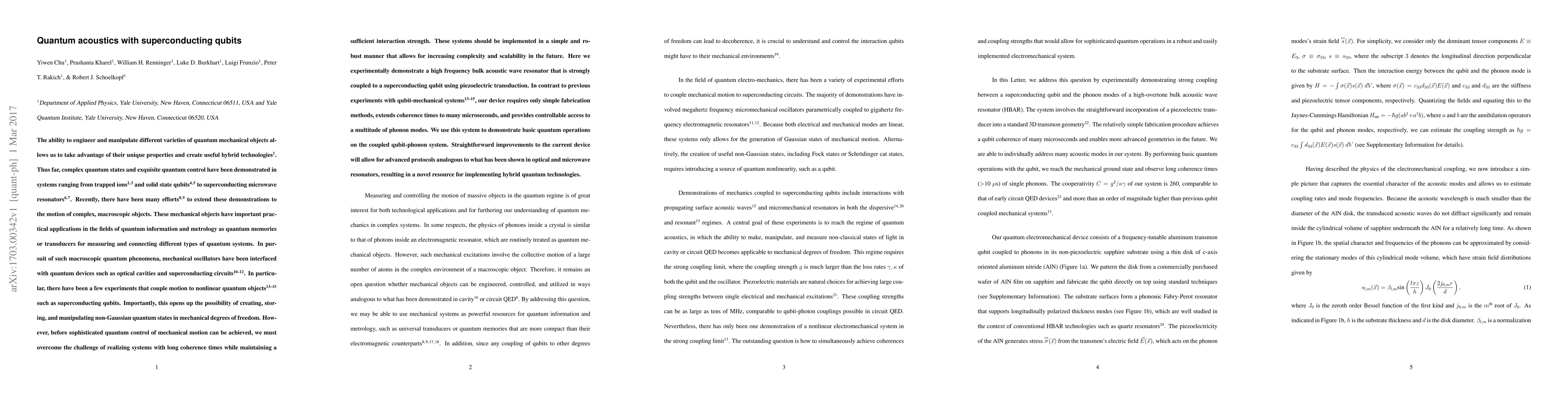 This paper demonstrates a high-frequency bulk acoustic wave resonator strongly coupled to a superconducting qubit via piezoelectric transduction, achieving long coherence times and scalable complexity. The system enables basic quantum operations on the coupled qubit-phonon system, paving the way for advanced hybrid quantum technologies.
