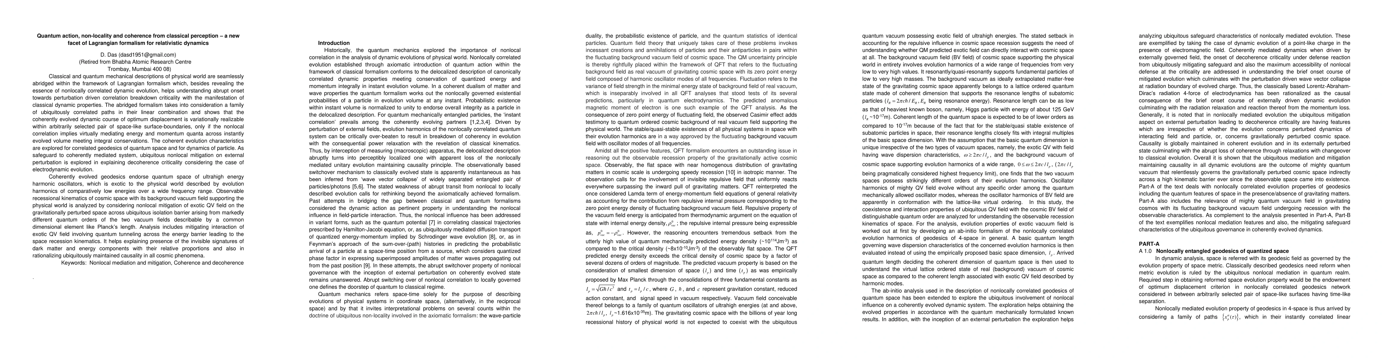 Introspection into the classical and quantum mechanical analyses reveals that the essential consideration for seamlessly bridging the two is to optimize the relaxation loss in the field-particle interaction on classically defined stationary action paths. This study thus points out that the Lagrangian dynamics though considers stationary action ignores the optimum power loss criterion in the interactive negotiation for the dynamic passage. Taking the radiation loss optimization as the additional criterion in the accelerated motion of a charged particle it is shown that the dynamics is necessarily executed by a family of nonlocally entangled paths. In the coherent entanglement the paths unitarily evolves in space-time conserving the instant energy and momentum integrally over the volume. The evolution dictates quantized energy and momentum, and defines the rationale behind decoherence with radiation relaxation. Under the sustained interaction the nonlocal field incessantly attempt defending the unitary evolutions at the cost of the relaxation loss from the external field. The nonlocally mediated electrodynamics is free of issues like acceleration runaway in the decohered interaction of moving charge with external field, where relaxation occurs both in ordered (Larmor radiation) and disordered (thermal radiation) forms, the latter generally being insignificant in proportion. The thermal relaxation rate is shown to be akin to that in Hawking-Unruh radiations. The classically derived formulation proves its versatility in revealing all the nonlocal characteristics of the micro-world and more. It reveals the nonlocal interplay in setting the signal speed limit, the nonlocal entanglement limit and the disentanglement mechanism. It provides the estimates of macroscopic and cosmic phenomena.