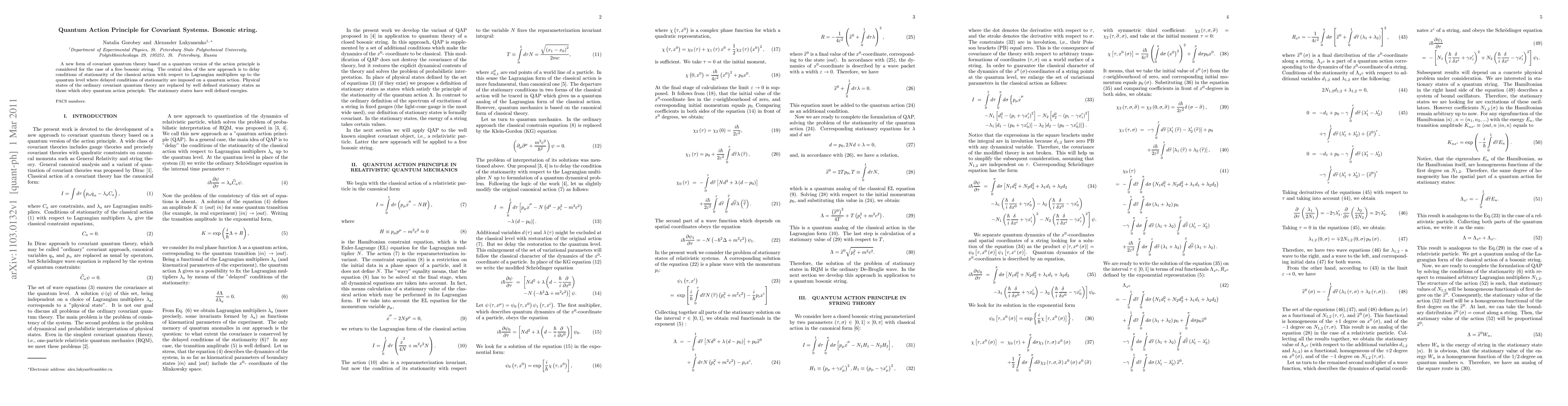 This paper introduces a covariant quantum theory for the free bosonic string, where stationarity conditions of the classical action are delayed until the quantum level, resulting in well-defined stationary states with clear energy properties. This approach replaces conventional physical states with these new stationary states governed by the quantum action principle.