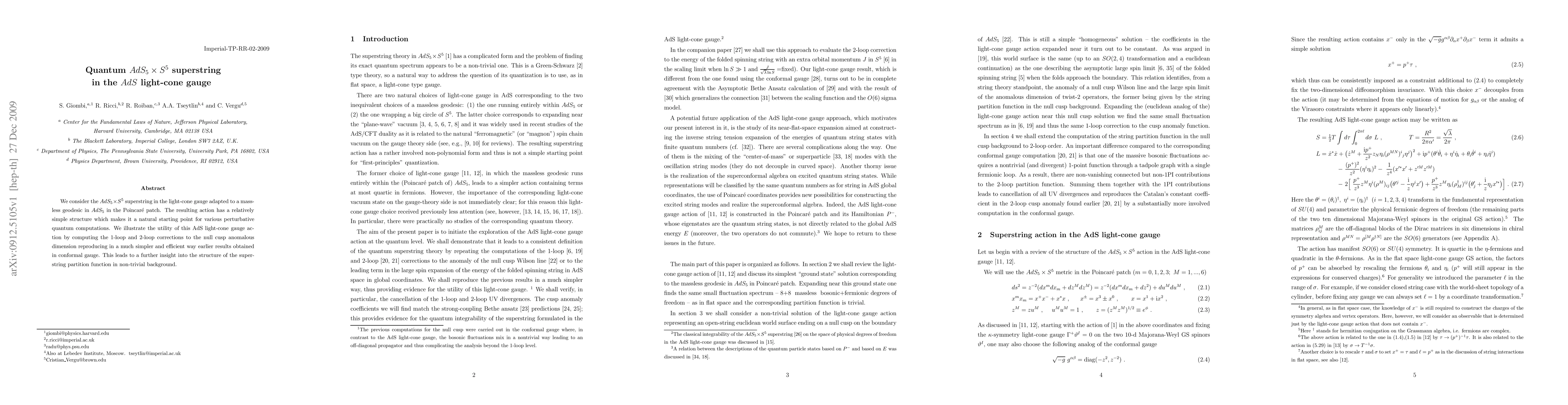 This paper explores the AdS_5 x S^5 superstring within the AdS light-cone gauge, providing a simplified action for quantum computations. It demonstrates the gauge's efficiency by computing 1-loop and 2-loop corrections for the null cusp anomalous dimension, verifying earlier conformal gauge results and offering deeper insights into the superstring partition function.