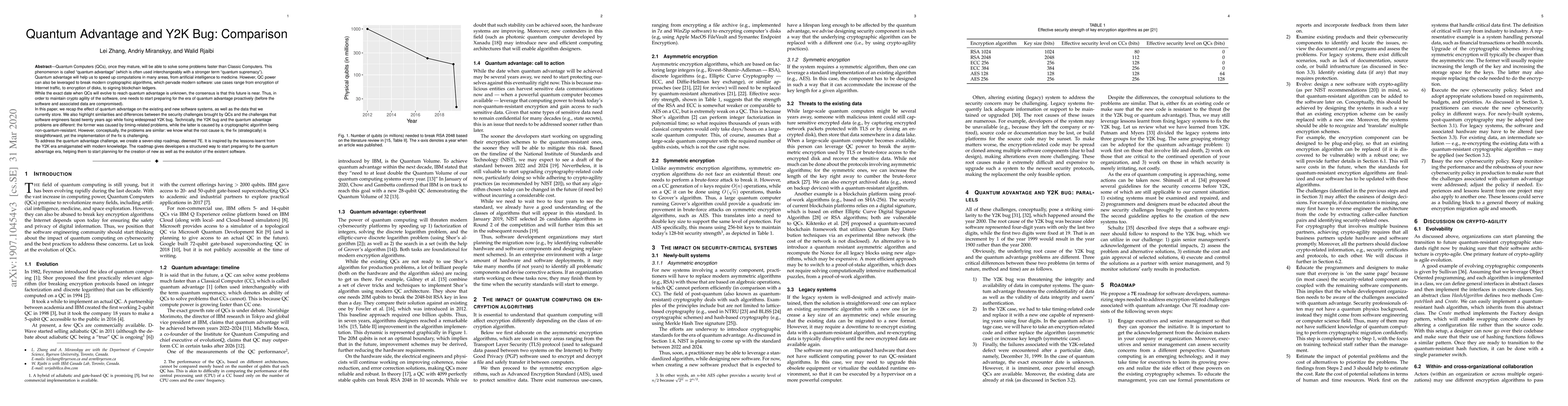Quantum Computers (QCs), once they mature, will be able to solve some problems faster than Classic Computers. This phenomenon is called "quantum advantage" (or a stronger term "quantum supremacy"). Quantum advantage will help us to speed up computations in many areas, from artificial intelligence to medicine. However, QC power can also be leveraged to break modern cryptographic algorithms, which pervade modern software: use cases range from encryption of Internet traffic, to encryption of disks, to signing blockchain ledgers. While the exact date when QCs will evolve to reach quantum advantage is unknown, the consensus is that this future is near. Thus, in order to maintain crypto agility of the software, one needs to start preparing for the era of quantum advantage proactively. In this paper, we recap the effect of quantum advantage on the existing and new software systems, as well as the data that we currently store. We also highlight similarities and differences between the security challenges brought by QCs and the challenges that software engineers faced twenty years ago while fixing widespread Y2K bug. Technically, the Y2K bug and the quantum advantage problems are different: the former was caused by timing-related problems, while the latter is caused by a cryptographic algorithm being non-quantum-resistant. However, conceptually, the problems are similar: we know what the root cause is, the fix (strategically) is straightforward, yet the implementation of the fix is challenging. To address the quantum advantage challenge, we create a seven-step roadmap, deemed 7E. It is inspired by the lessons-learnt from the Y2K era amalgamated with modern knowledge. The roadmap gives developers a structured way to start preparing for the quantum advantage era, helping them to start planning for the creation of new as well as the evolution of the existent software.