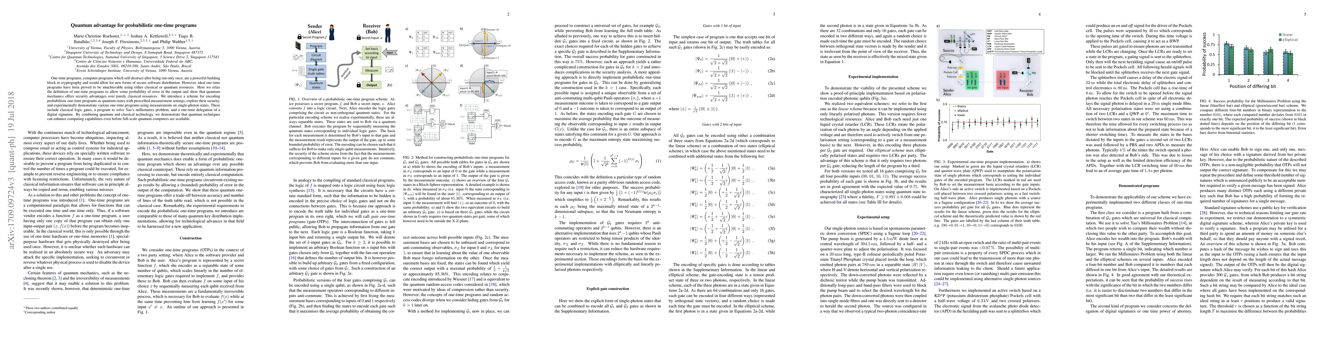 This paper explores the feasibility of probabilistic one-time programs using quantum mechanics, demonstrating security advantages over classical methods. It introduces a scheme for encoding these programs as quantum states and experimentally validates various quantum-enhanced one-time programs, showing potential for enhanced computing capabilities before the advent of full-scale quantum computers.