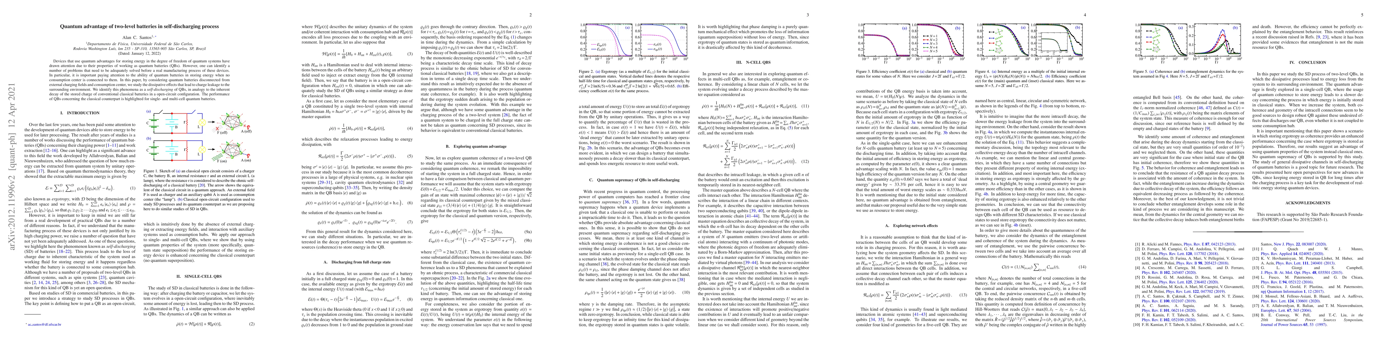 This paper investigates the self-discharging process in quantum batteries (QBs) when disconnected from external charging and consumption, highlighting quantum advantages over classical batteries in energy storage despite decoherence-induced charge leakage. It demonstrates that QBs exhibit superior performance in maintaining stored energy compared to conventional batteries.