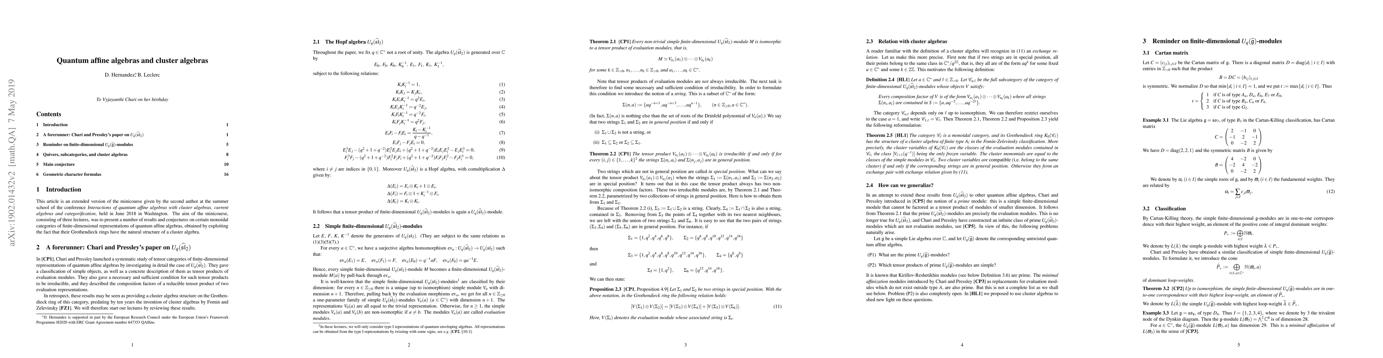This paper summarizes a minicourse on the interplay between quantum affine algebras and cluster algebras, focusing on the representation theory of quantum affine algebras and their connection to cluster algebras through monoidal categories and Grothendieck rings. It presents results and conjectures on the finite-dimensional representations of these algebras.