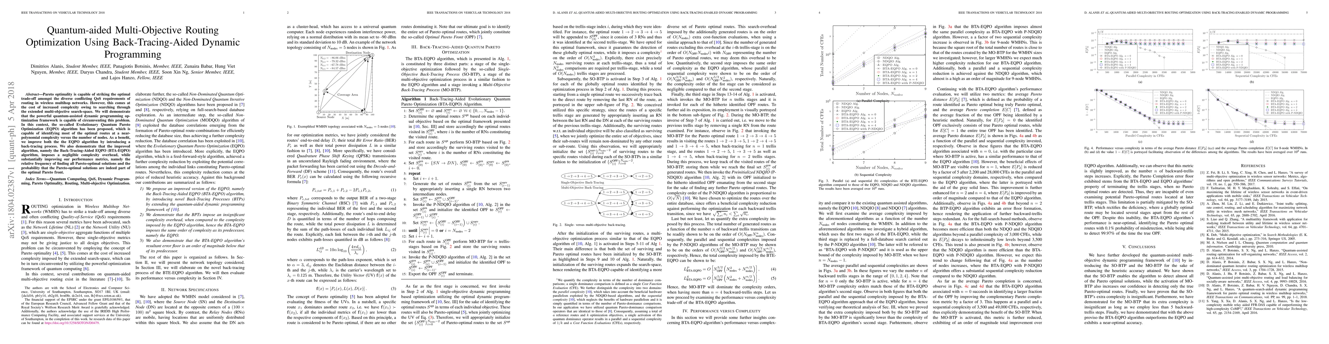 Pareto optimality is capable of striking the optimal trade-off amongst the diverse conflicting QoS requirements of routing in wireless multihop networks. However, this comes at the cost of increased complexity owing to searching through the extended multi-objective search-space. We will demonstrate that the powerful quantum-assisted dynamic programming optimization framework is capable of circumventing this problem. In this context, the so-called Evolutionary Quantum Pareto Optimization (EQPO) algorithm has been proposed, which is capable of identifying most of the optimal routes at a near-polynomial complexity versus the number of nodes. As a benefit, we improve both the the EQPO algorithm by introducing a back-tracing process. We also demonstrate that the improved algorithm, namely the Back-Tracing-Aided EQPO (BTA-EQPO) algorithm, imposes a negligible complexity overhead, while substantially improving our performance metrics, namely the relative frequency of finding all Pareto-optimal solutions and the probability that the Pareto-optimal solutions are indeed part of the optimal Pareto front