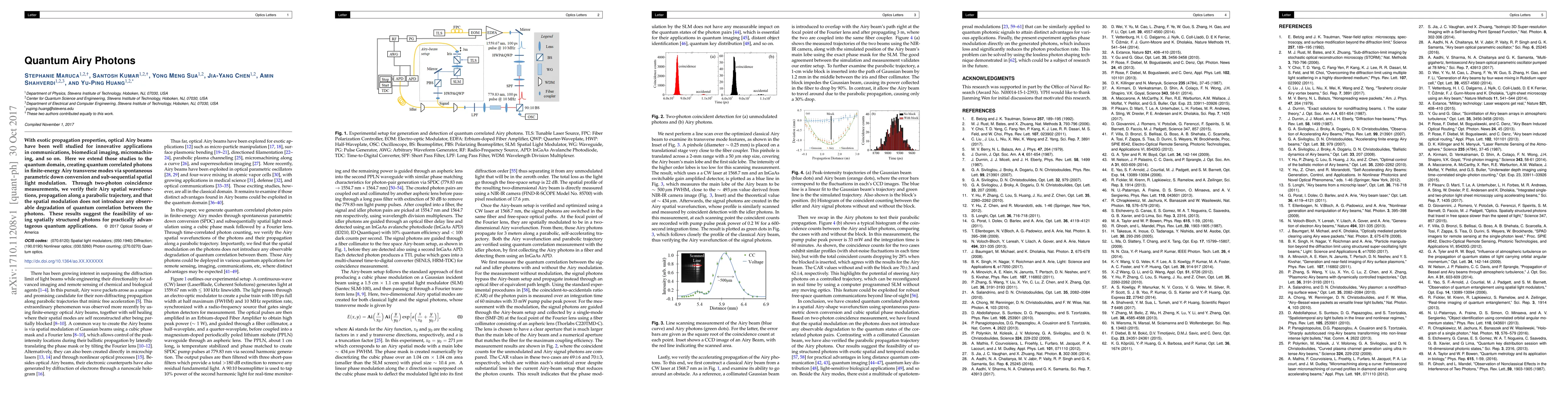 With exotic propagation properties, optical Airy beams have been well studied for innovative applications in communications, biomedical imaging, micromachining, and so on. Here we extend those studies to the quantum domain, creating quantum correlated photons in finite-energy Airy transverse modes via spontaneous parametric down conversion and sub-sequential spatial light modulation. Through two-photon coincidence measurements, we verify their Airy spatial wavefunctions, propagation along a parabolic trajectory, and that the spatial modulation does not introduce any observable degradation of quantum correlation between the photons. These results suggest the feasibility of using spatially structured photons for practically advantageous quantum applications.