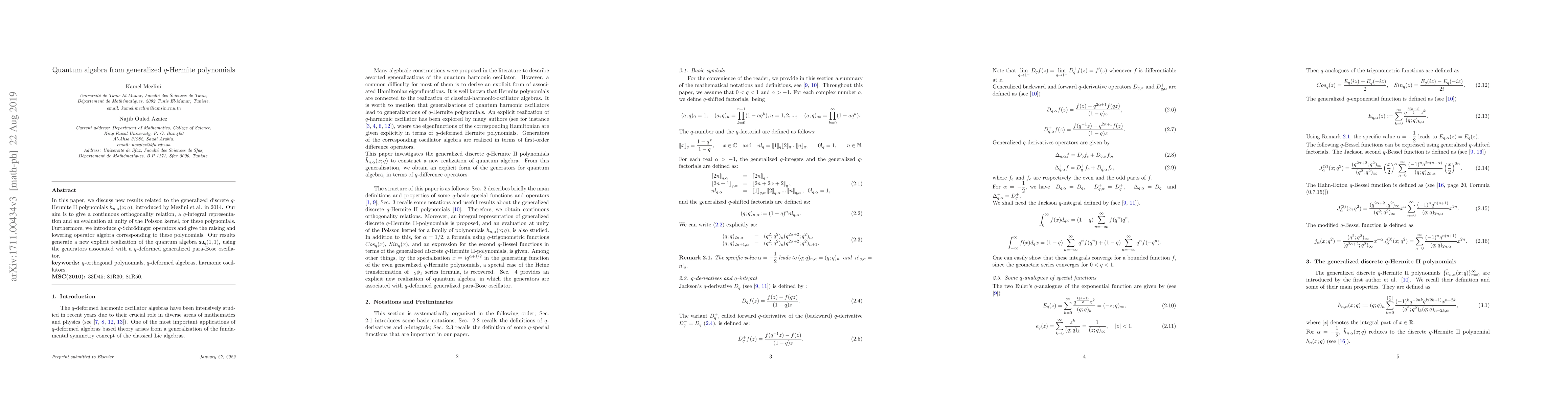 This paper introduces generalized $q$-Hermite II polynomials and develops a continuous orthogonality relation, $q$-integral representation, and evaluation at unity for the Poisson kernel. It also establishes $q$-Schrödinger operators and their corresponding raising and lowering operator algebra, ultimately realizing the quantum algebra $\mathsf{su}_{q}(1, 1)$ via a $q$-deformed generalized para-Bose oscillator.