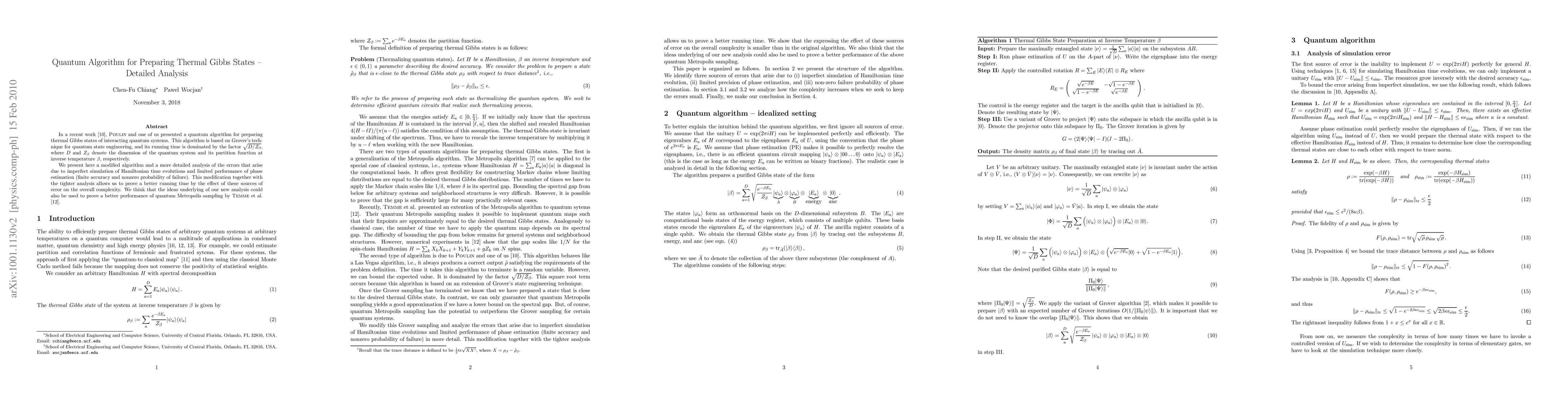 In a recent work [10], Poulin and one of us presented a quantum algorithm for preparing thermal Gibbs states of interacting quantum systems. This algorithm is based on Grovers's technique for quantum state engineering, and its running time is dominated by the factor D/Z(\beta), where D and Z(\beta) denote the dimension of the quantum system and its partition function at inverse temperature \beta, respectively. We present here a modified algorithm and a more detailed analysis of the errors that arise due to imperfect simulation of Hamiltonian time evolutions and limited performance of phase estimation (finite accuracy and nonzero probability of failure). This modfication together with the tighter analysis allows us to prove a better running time by the effect of these sources of error on the overall complexity. We think that the ideas underlying of our new analysis could also be used to prove a better performance of quantum Metropolis sampling by Temme et al. [12].