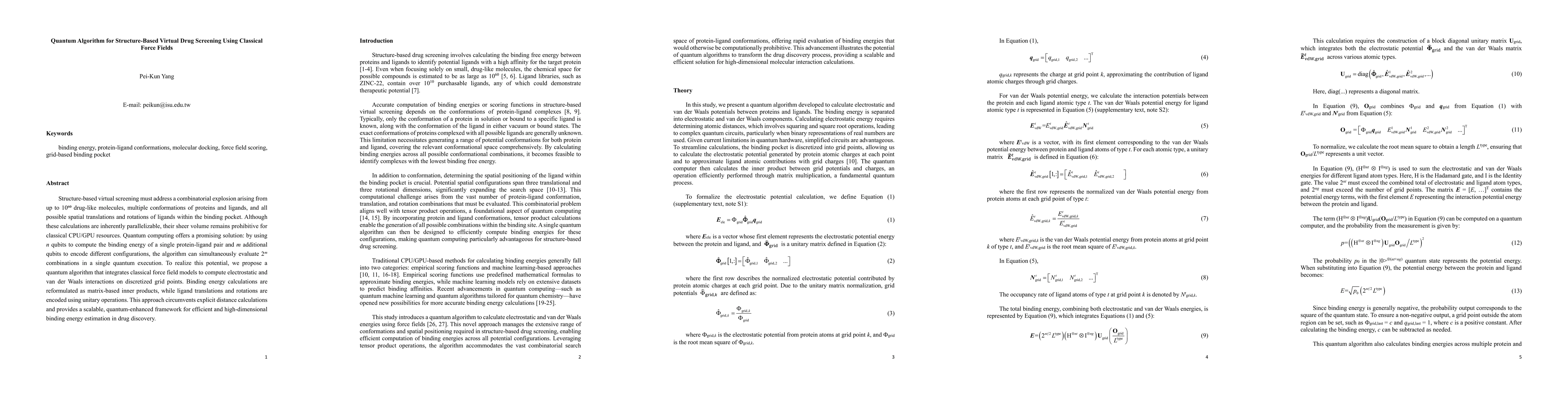 This work is novel by bridging quantum computing with classical force field methods for structure-based virtual drug screening, offering a quantum-enhanced approach to tackle the computational challenges in drug discovery.
