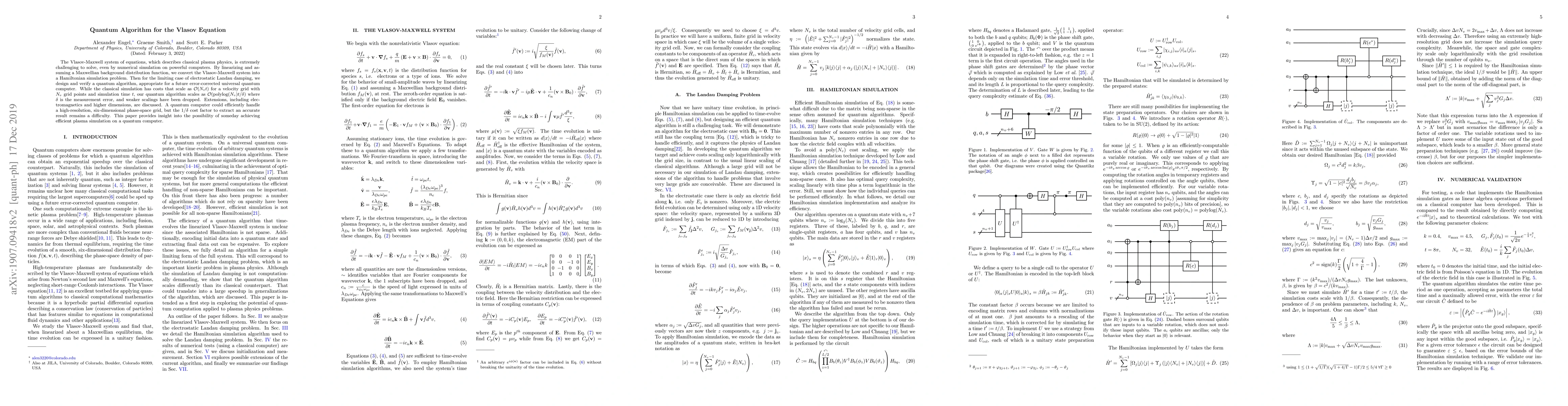 The Vlasov-Maxwell system of equations, which describes classical plasma physics, is extremely challenging to solve, even by numerical simulation on powerful computers. By linearizing and assuming a Maxwellian background distribution function, we convert the Vlasov-Maxwell system into a Hamiltonian simulation problem. Then for the limiting case of electrostatic Landau damping, we design and verify a quantum algorithm, appropriate for a future error-corrected universal quantum computer. While the classical simulation has costs that scale as $\mathcal{O}(N_v t)$ for a velocity grid with $N_v$ grid points and simulation time $t$, our quantum algorithm scales as $\mathcal{O}(\text{polylog}(N_v) t/\delta)$ where $\delta$ is the measurement error, and weaker scalings have been dropped. Extensions, including electromagnetics and higher dimensions, are discussed. A quantum computer could efficiently handle a high-resolution, six-dimensional phase-space grid, but the $1/\delta$ cost factor to extract an accurate result remains a difficulty. This paper provides insight into the possibility of someday achieving efficient plasma simulation on a quantum computer.