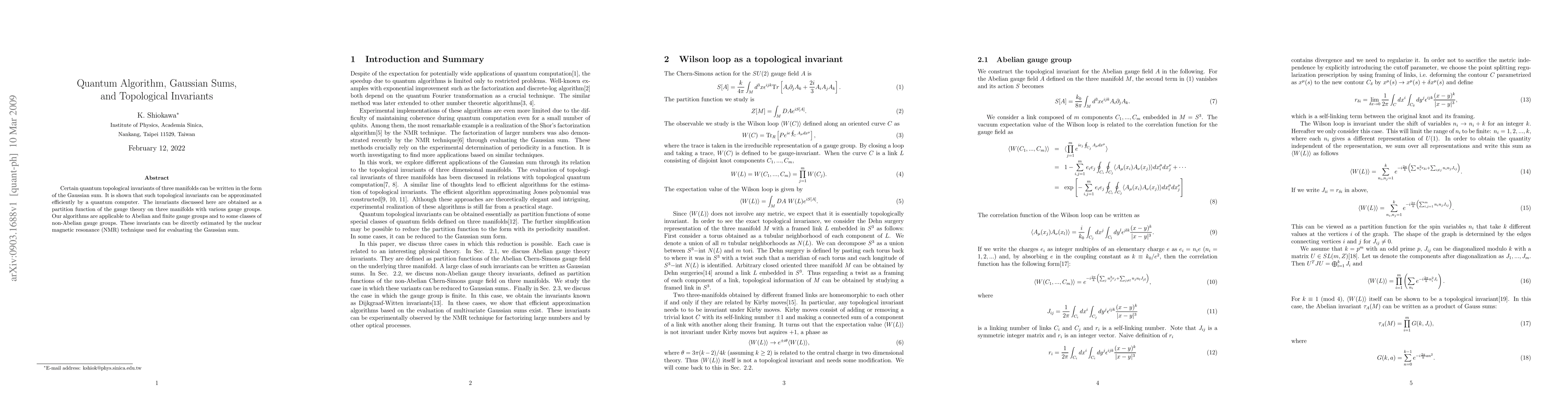 This paper presents quantum algorithms for efficiently approximating topological invariants of three-manifolds expressed as Gaussian sums. The methods apply to both Abelian and finite gauge groups, as well as some non-Abelian groups, and can be directly estimated using NMR techniques.