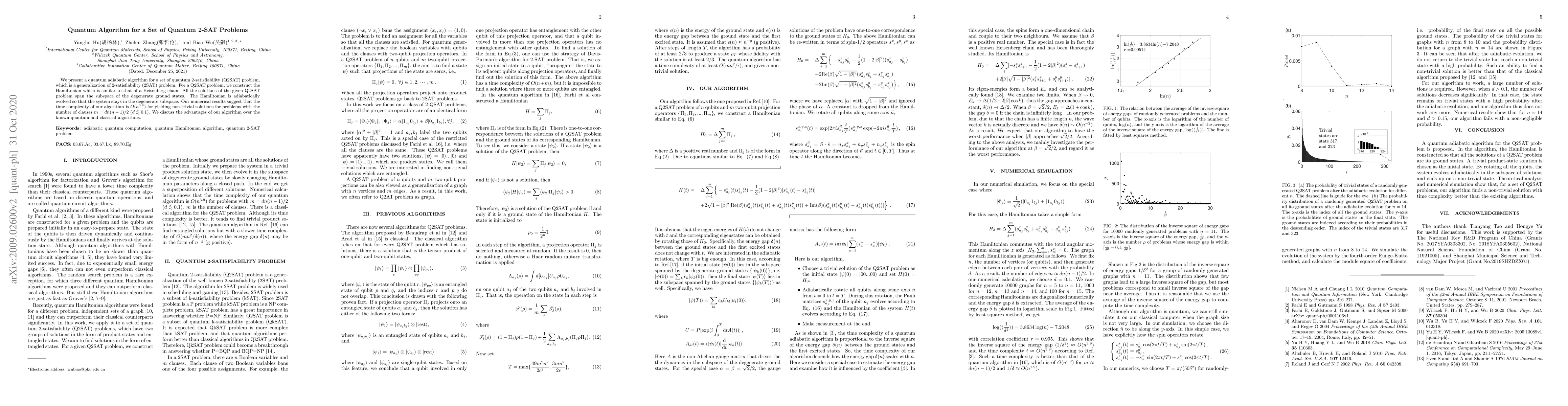 Researchers present a quantum adiabatic algorithm to solve a set of quantum 2-sat problems with an estimated time complexity of $O(n^{3.9})$, outperforming known algorithms.