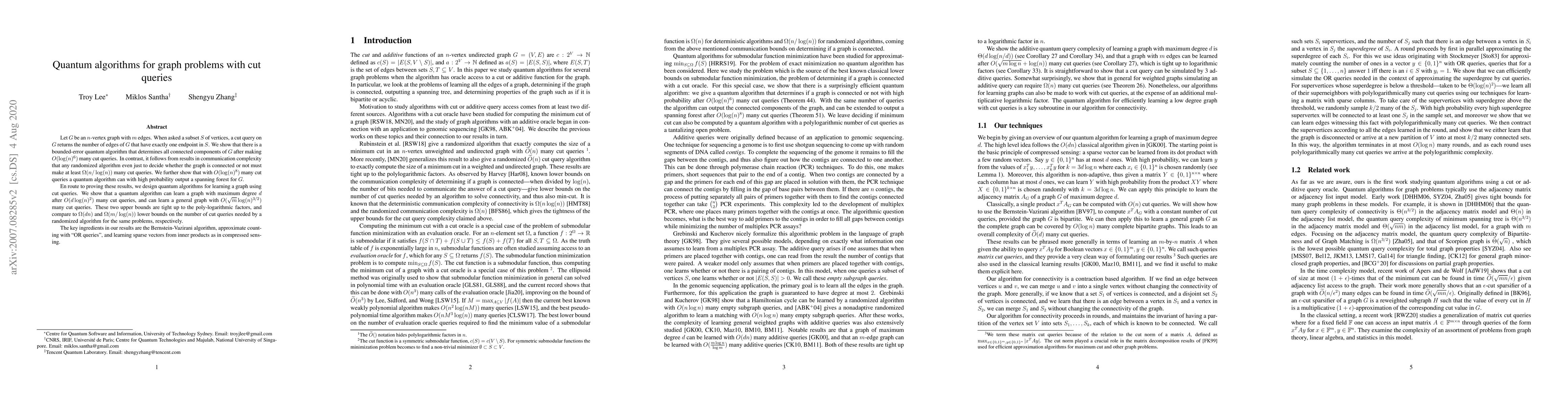 A quantum algorithm can determine connected components of a graph with $O( ext{log}(n)^6)$ cut queries, outperforming the $ ext{θ}(n/ ext{log}(n))$ lower bound for randomized algorithms.