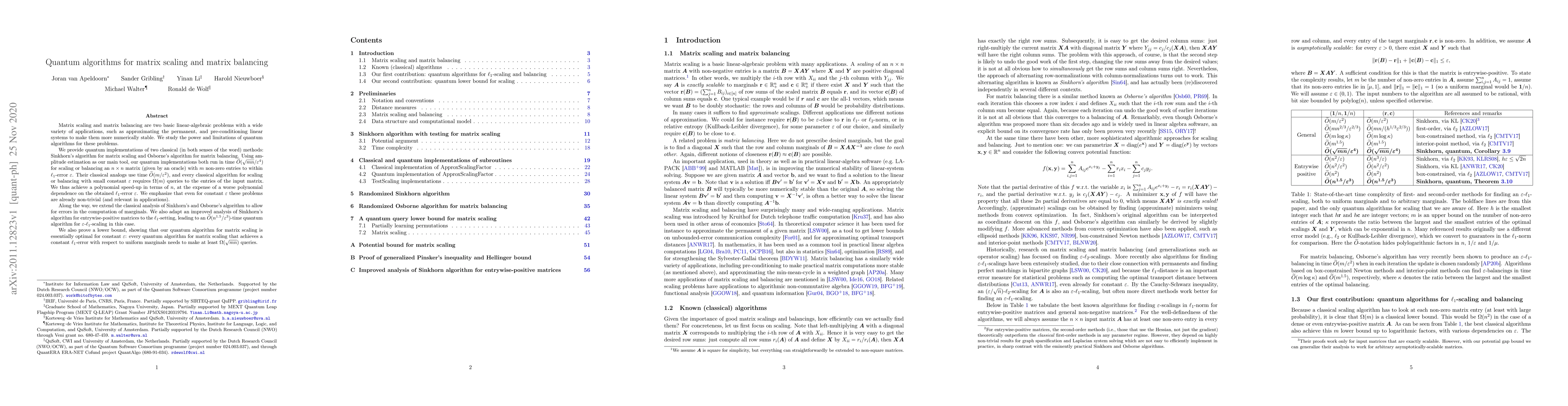 Researchers have developed quantum algorithms for matrix scaling and balancing, achieving polynomial speed-ups in time complexity compared to classical methods, but with a trade-off in terms of error tolerance.