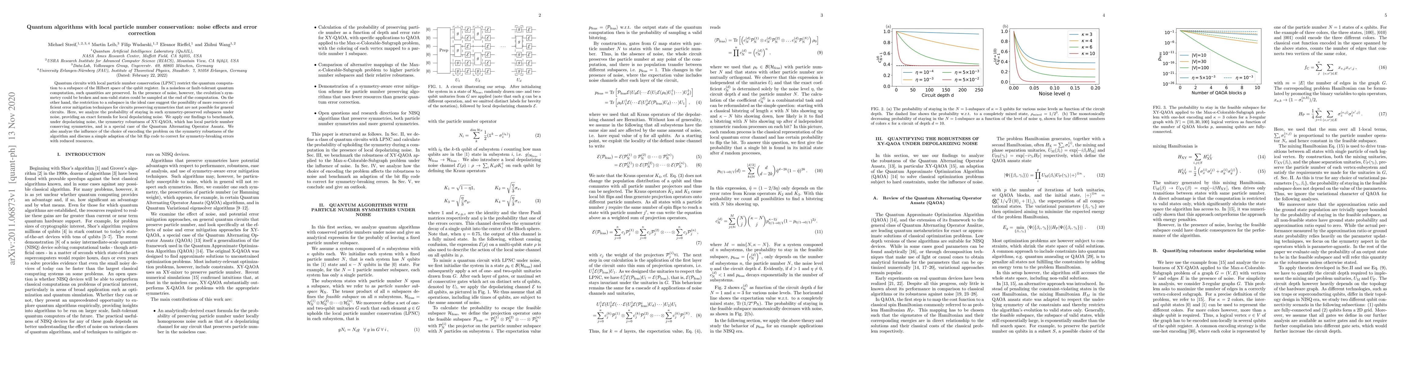 A study on quantum algorithms with local particle number conservation found that noise can break symmetry in these systems, but also identified an exact formula for depolarizing noise and suggested adaptations to correct errors with reduced resources.