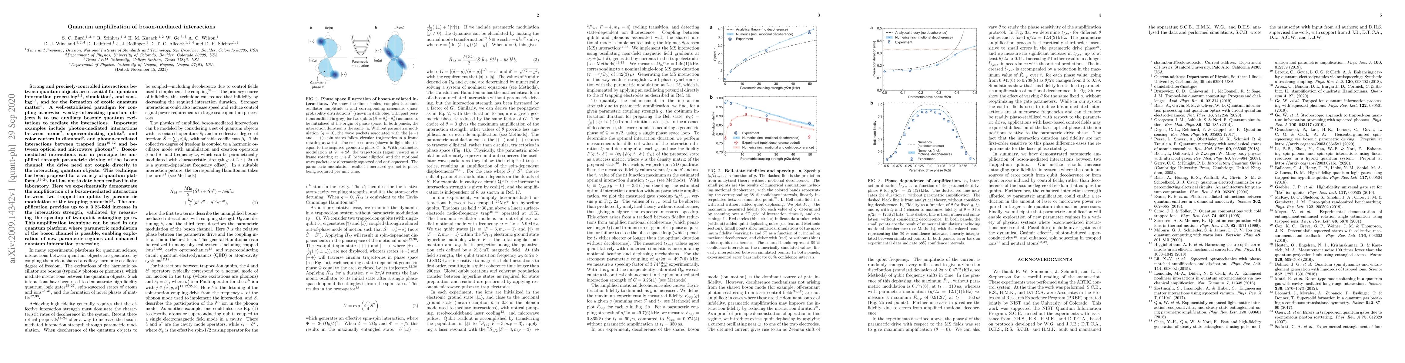 Researchers have successfully amplified a boson-mediated interaction between two trapped-ion qubits using parametric modulation of the trapping potential, increasing interaction strength up to 3.25-fold.
