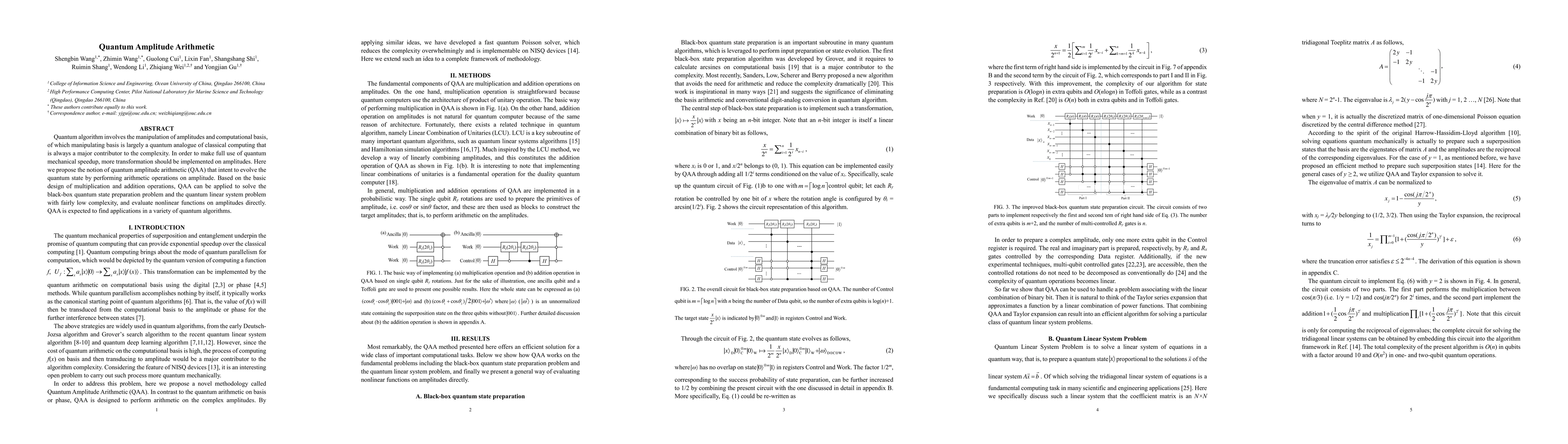 This paper introduces quantum amplitude arithmetic (QAA), a novel approach to manipulate quantum state amplitudes through arithmetic operations, aiming to enhance quantum speedup. QAA, based on multiplication and addition, can solve quantum state preparation and linear system problems with lower complexity, potentially benefiting various quantum algorithms.