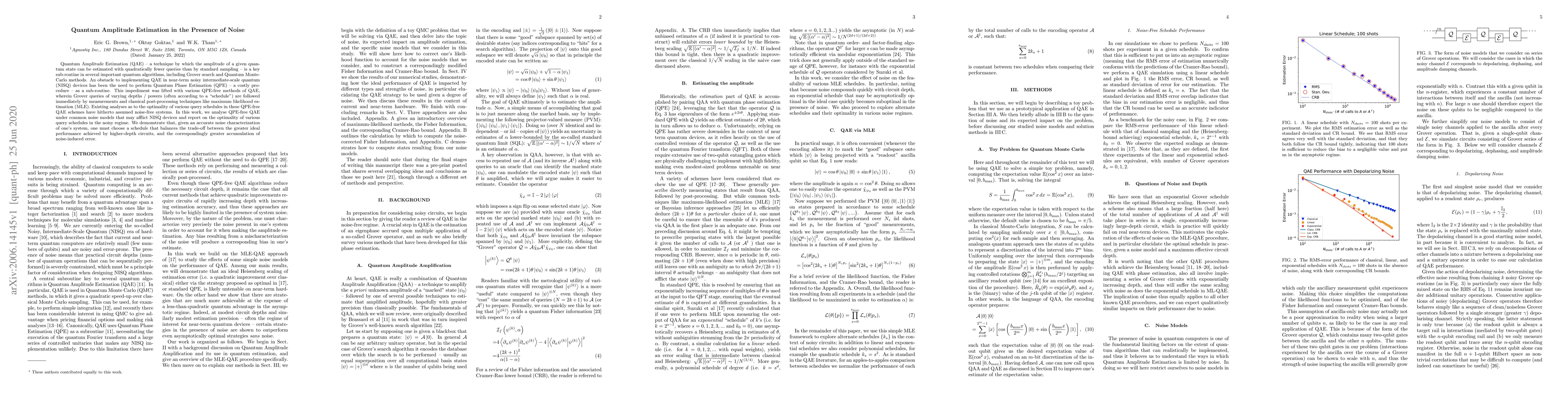 This paper investigates the performance of Quantum Amplitude Estimation (QAE) in noisy quantum systems, proposing QPE-free methods that avoid costly subroutines. It analyzes the optimality of different query schedules under common noise models, showing that an optimal schedule must balance ideal performance with noise-induced error accumulation.