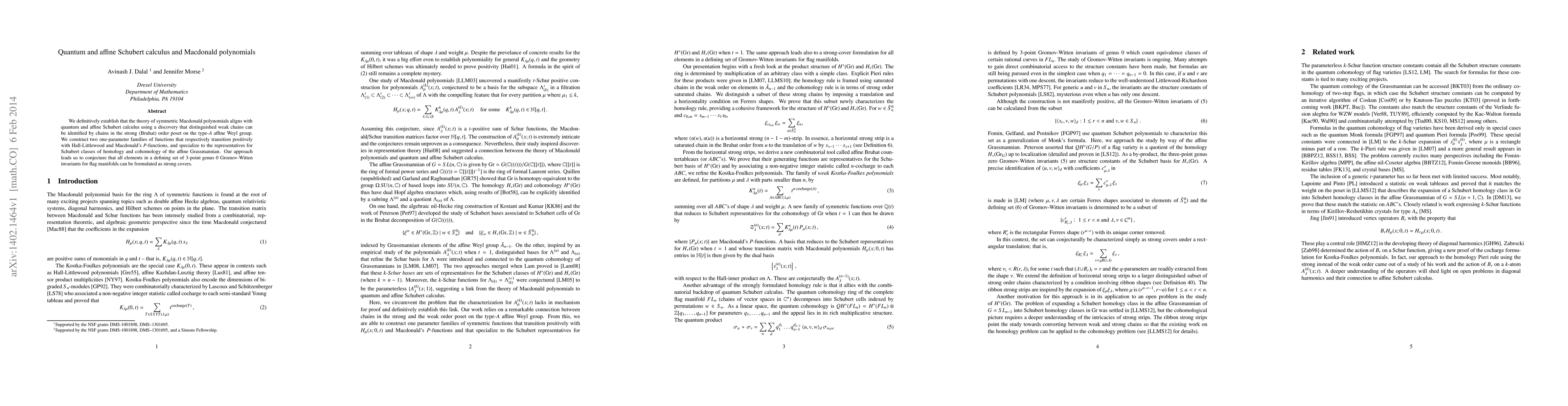 We definitively establish that the theory of symmetric Macdonald polynomials aligns with quantum and affine Schubert calculus using a discovery that distinguished weak chains can be identified by chains in the strong (Bruhat) order poset on the type-$A$ affine Weyl group. We construct two one-parameter families of functions that respectively transition positively with Hall-Littlewood and Macdonald's $P$-functions, and specialize to the representatives for Schubert classes of homology and cohomology of the affine Grassmannian. Our approach leads us to conjecture that all elements in a defining set of 3-point genus 0 Gromov-Witten invariants for flag manifolds can be formulated as strong covers.