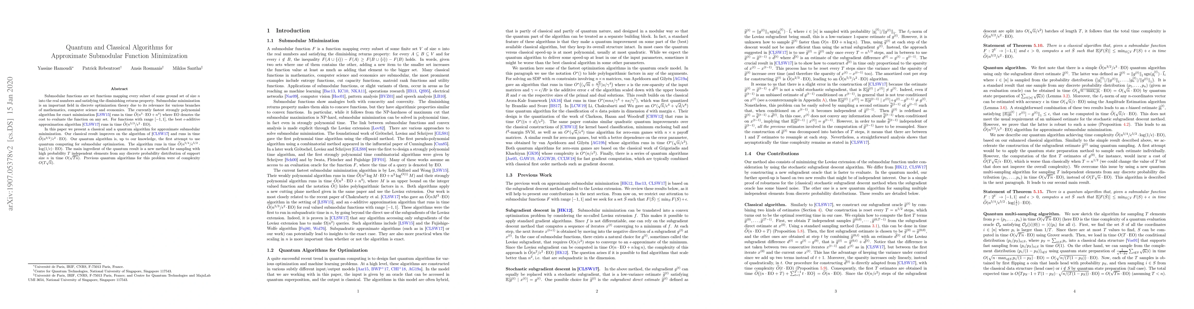 Researchers have developed a classical algorithm with improved time complexity for approximate submodular function minimization, as well as a quantum algorithm that uses novel sampling techniques to achieve better results.
