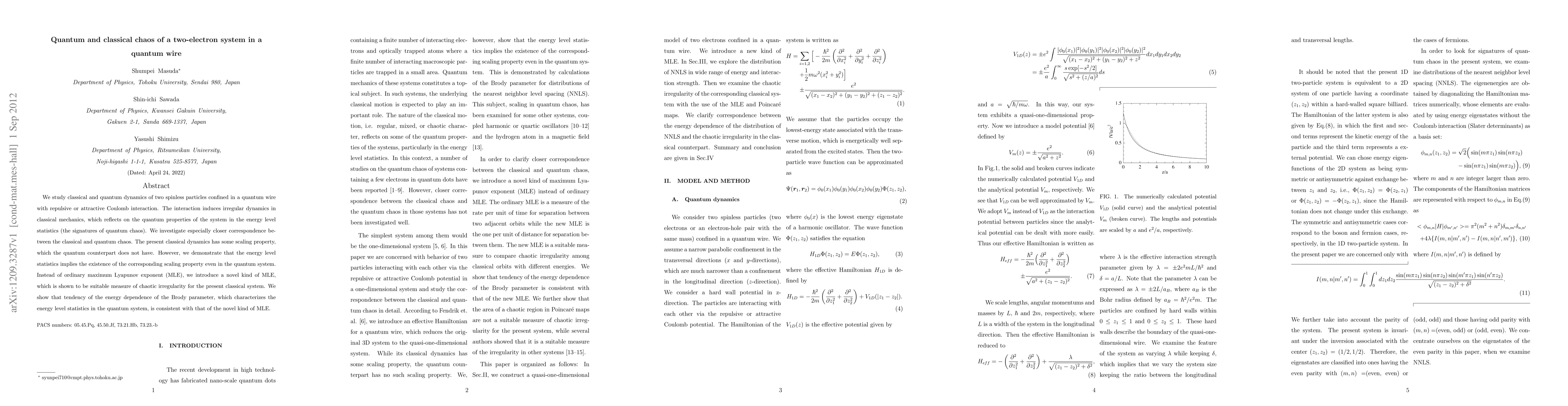 Researchers studied a two-electron system in a quantum wire with repulsive or attractive interaction, finding irregular dynamics that reflect both classical and quantum chaos. They introduced a new measure of chaotic irregularity suitable for the system, showing consistency between this measure and energy level statistics.
