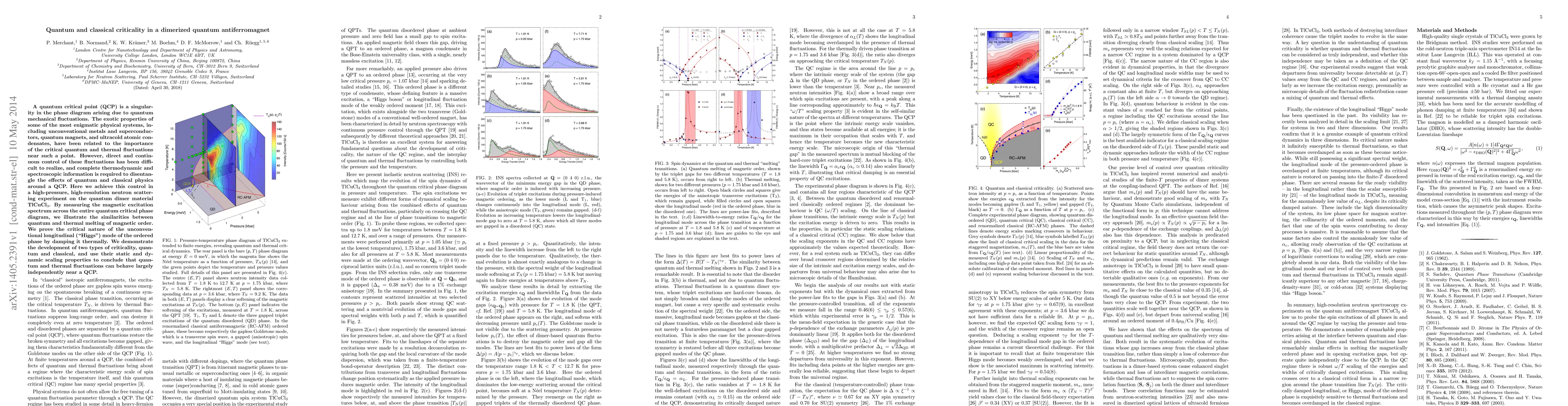 A quantum critical point (QCP) is a singularity in the phase diagram arising due to quantum mechanical fluctuations. The exotic properties of some of the most enigmatic physical systems, including unconventional metals and superconductors, quantum magnets, and ultracold atomic condensates, have been related to the importance of the critical quantum and thermal fluctuations near such a point. However, direct and continuous control of these fluctuations has been difficult to realize, and complete thermodynamic and spectroscopic information is required to disentangle the effects of quantum and classical physics around a QCP. Here we achieve this control in a high-pressure, high-resolution neutron scattering experiment on the quantum dimer material TlCuCl3. By measuring the magnetic excitation spectrum across the entire quantum critical phase diagram, we illustrate the similarities between quantum and thermal melting of magnetic order. We prove the critical nature of the unconventional longitudinal ("Higgs") mode of the ordered phase by damping it thermally. We demonstrate the development of two types of criticality, quantum and classical, and use their static and dynamic scaling properties to conclude that quantum and thermal fluctuations can behave largely independently near a QCP.