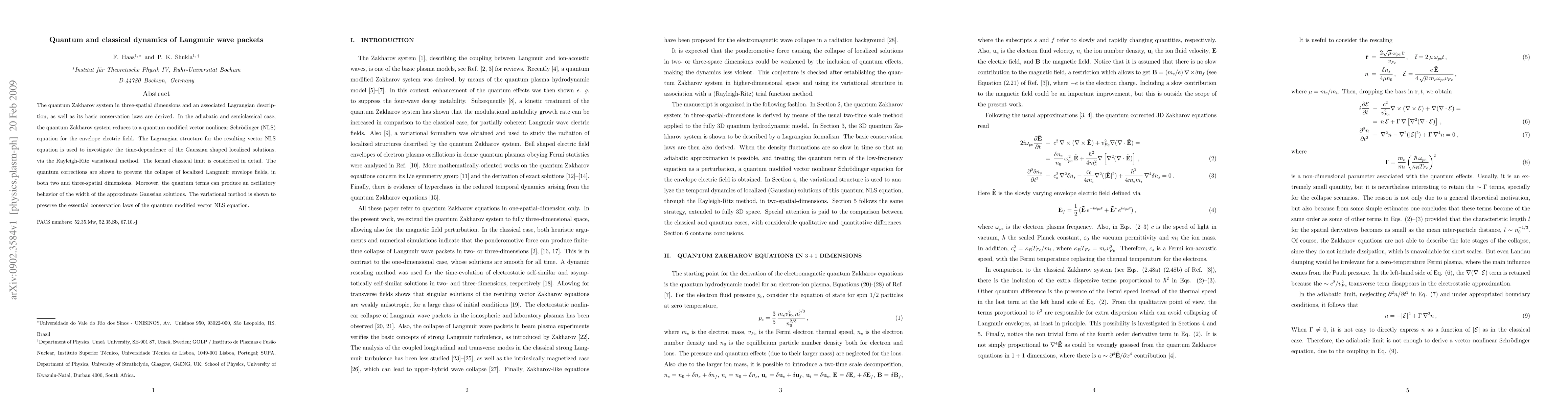 Research finds that quantum corrections in Langmuir wave packets prevent collapse and can produce oscillatory behavior in localized solutions. This helps preserve essential conservation laws.