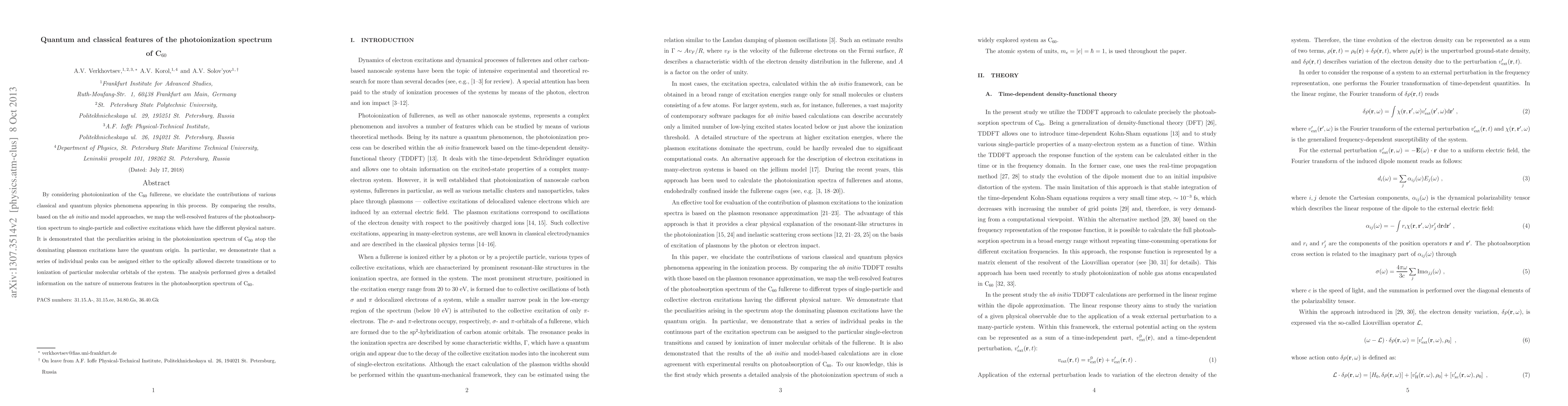 Researchers used quantum physics to study the photoionization spectrum of C60 fullerene, revealing that certain peaks have a quantum origin, while others are due to classical plasmon excitations.