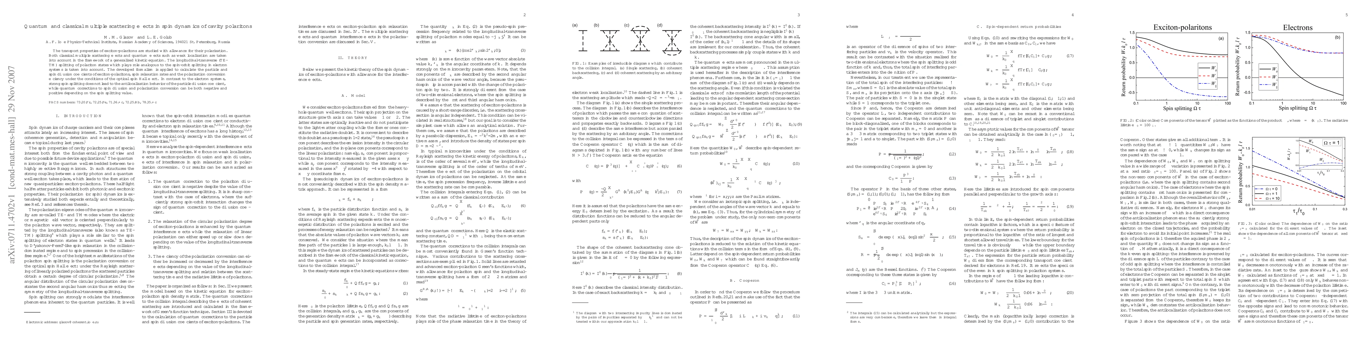 This paper investigates exciton-polariton transport, considering both classical scattering and quantum effects like weak localization within a generalized kinetic equation. It finds that strong spin splitting does not cause antilocalization in particle diffusion, unlike in electron systems, while quantum corrections to spin diffusion and polarization conversion vary depending on the spin splitting value.