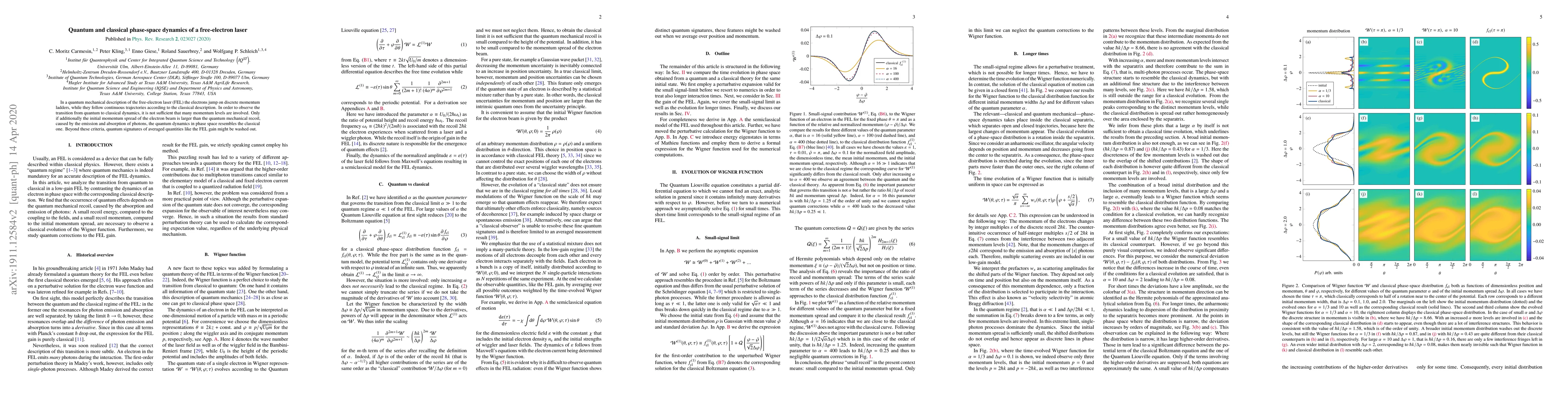This paper investigates the quantum and classical phase-space dynamics of a free-electron laser, showing that the transition from quantum to classical behavior requires not only many momentum levels but also an initial momentum spread exceeding the quantum recoil. Quantum signatures in averaged quantities like FEL gain may be obscured under these conditions.