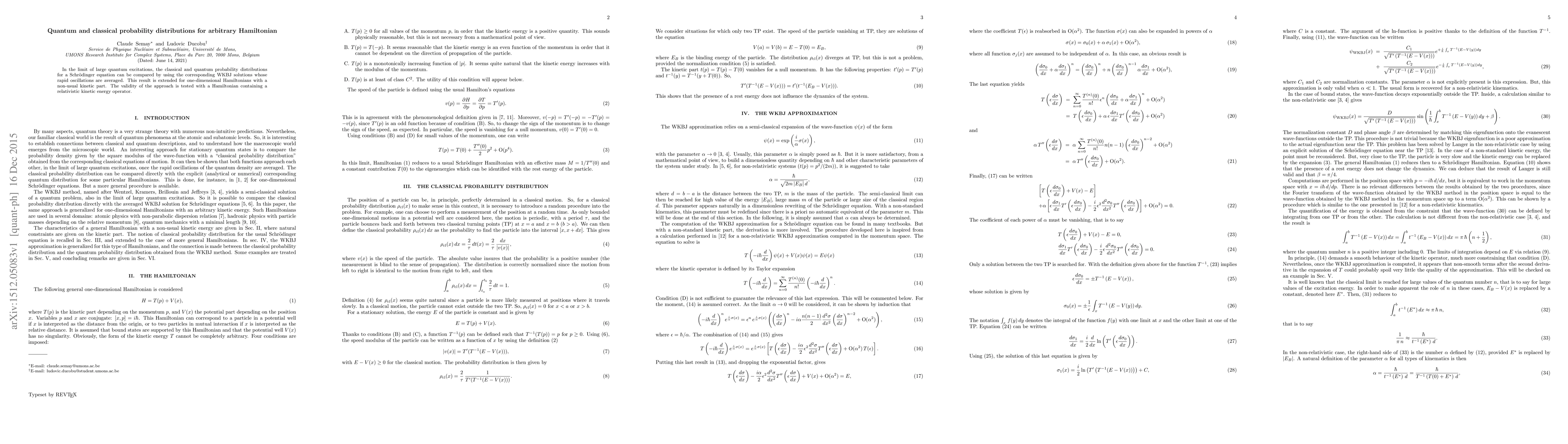 In the limit of large quantum excitations, the classical and quantum probability distributions for a Schr\"odinger equation can be compared by using the corresponding WKBJ solutions whose rapid oscillations are averaged. This result is extended for one-dimensional Hamiltonians with a non-usual kinetic part. The validity of the approach is tested with a Hamiltonian containing a relativistic kinetic energy operator.