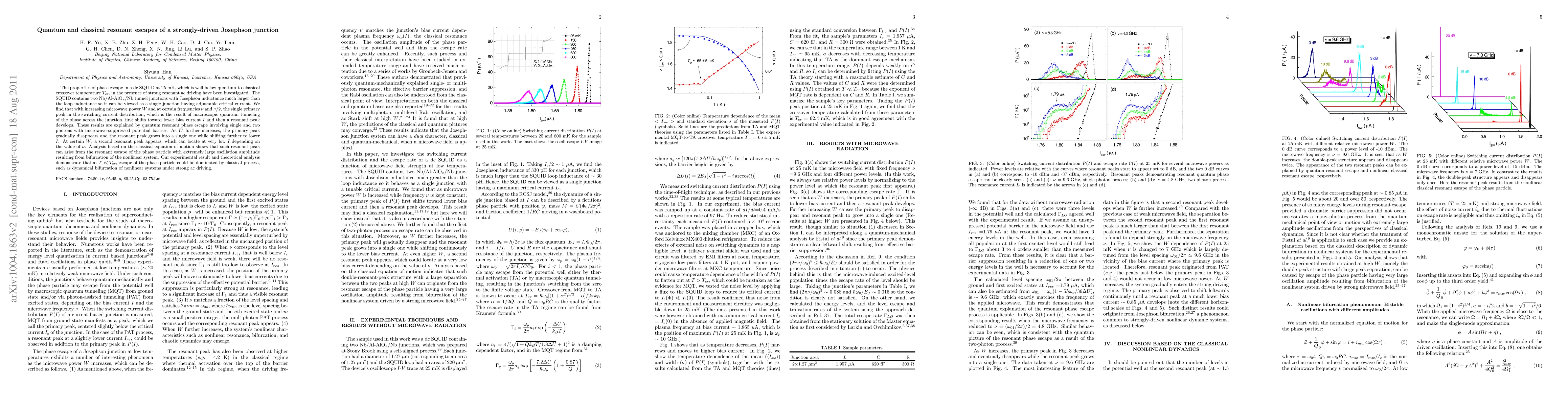 The properties of phase escape in a dc SQUID at 25 mK, which is well below quantum-to-classical crossover temperature $T_{cr}$, in the presence of strong resonant ac driving have been investigated. The SQUID contains two Nb/Al-AlO$_{x} $/Nb tunnel junctions with Josephson inductance much larger than the loop inductance so it can be viewed as a single junction having adjustable critical current. We find that with increasing microwave power $W$ and at certain frequencies $\nu $ and $\nu $/2, the single primary peak in the switching current distribution, \textrm{which is the result of macroscopic quantum tunneling of the phase across the junction}, first shifts toward lower bias current $I$ and then a resonant peak develops. These results are explained by quantum resonant phase escape involving single and two photons with microwave-suppressed potential barrier. As $W$ further increases, the primary peak gradually disappears and the resonant peak grows into a single one while shifting further to lower $I$. At certain $W$, a second resonant peak appears, which can locate at very low $I$ depending on the value of $\nu $. Analysis based on the classical equation of motion shows that such resonant peak can arise from the resonant escape of the phase particle with extremely large oscillation amplitude resulting from bifurcation of the nonlinear system. Our experimental result and theoretical analysis demonstrate that at $T\ll T_{cr}$, escape of the phase particle could be dominated by classical process, such as dynamical bifurcation of nonlinear systems under strong ac driving.