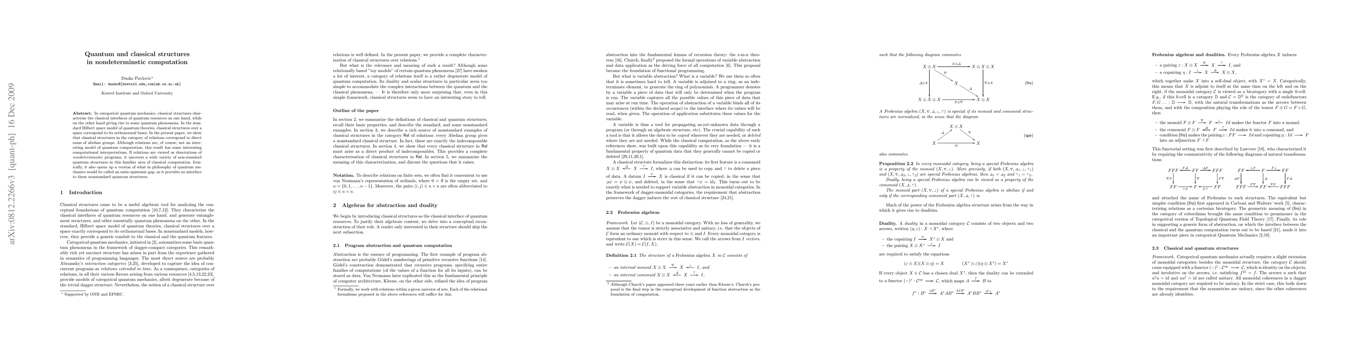 This paper explores how classical structures in categorical quantum mechanics relate to quantum phenomena and reveals that classical structures in the category of relations correspond to biproducts of abelian groups, offering intriguing computational interpretations in nondeterministic computation. Despite not modeling quantum computation, this insight uncovers nonstandard quantum structures in classical nondeterministic programs.