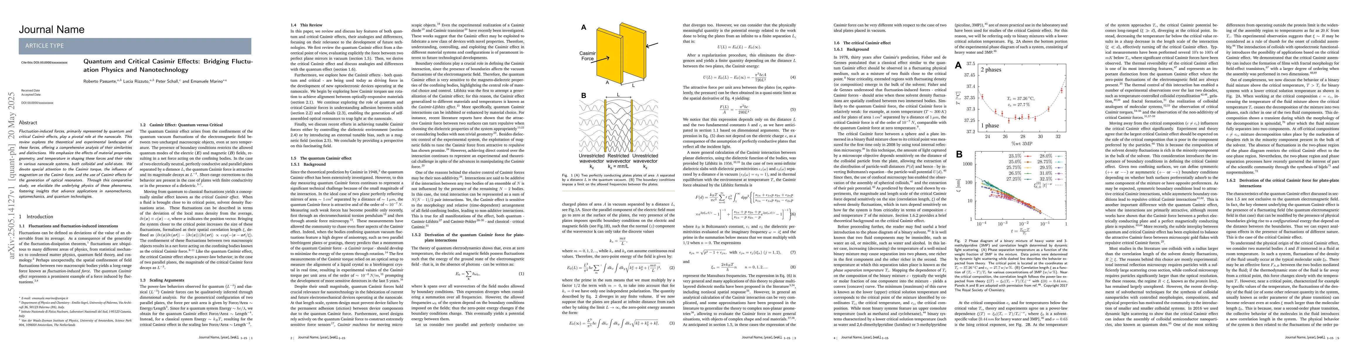 The paper provides a comprehensive review of theoretical and experimental aspects of quantum and critical Casimir effects, analyzing the influence of material properties, geometry, and temperature on nanoscale systems.