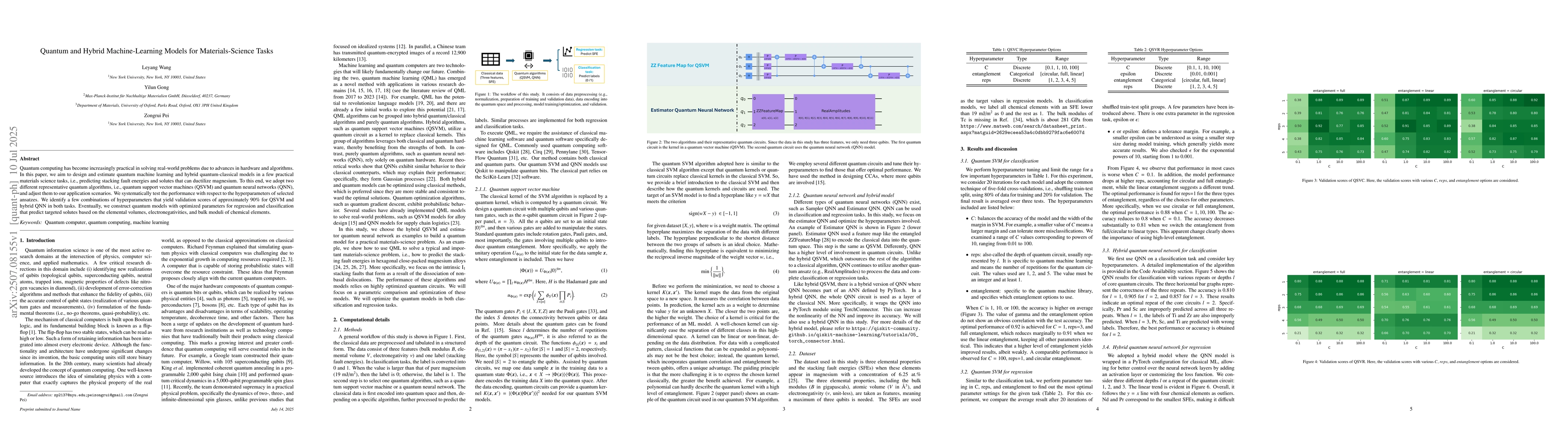 Quantum computing has become increasingly practical in solving real-world problems due to advances in hardware and algorithms. In this paper, we aim to design and estimate quantum machine learning and hybrid quantum-classical models in a few practical materials science tasks, i.e., predicting stacking fault energies and solutes that can ductilize magnesium. To this end, we adopt two different representative quantum algorithms, i.e., quantum support vector machines (QSVM) and quantum neural networks (QNN), and adjust them to our application scenarios. We systematically test the performance with respect to the hyperparameters of selected ansatzes. We identify a few combinations of hyperparameters that yield validation scores of approximately 90\% for QSVM and hybrid QNN in both tasks. Eventually, we construct quantum models with optimized parameters for regression and classification that predict targeted solutes based on the elemental volumes, electronegativities, and bulk moduli of chemical elements.