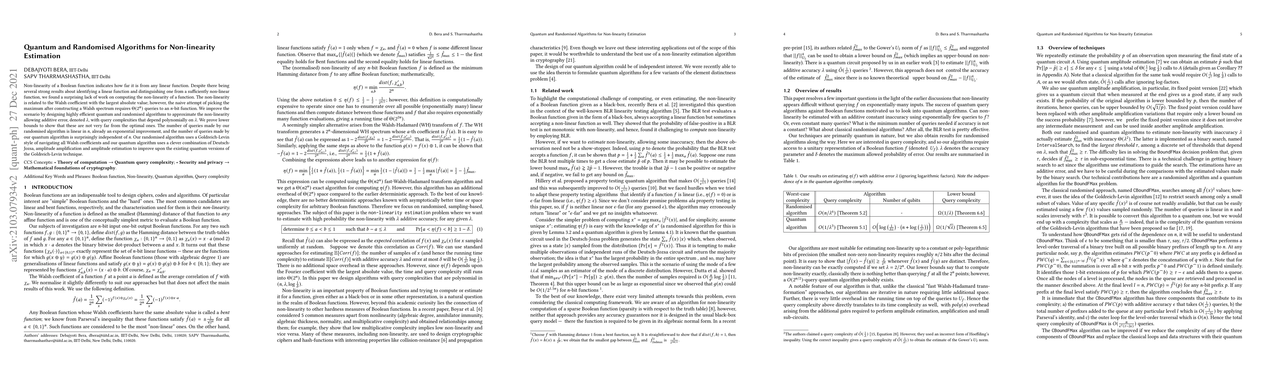 This paper presents efficient quantum and randomised algorithms to estimate the non-linearity of Boolean functions, significantly improving upon the $\Theta(2^n)$ query complexity of the naive approach. The randomised algorithm achieves linear query complexity in $n$, while the quantum algorithm achieves query complexity independent of $n$.