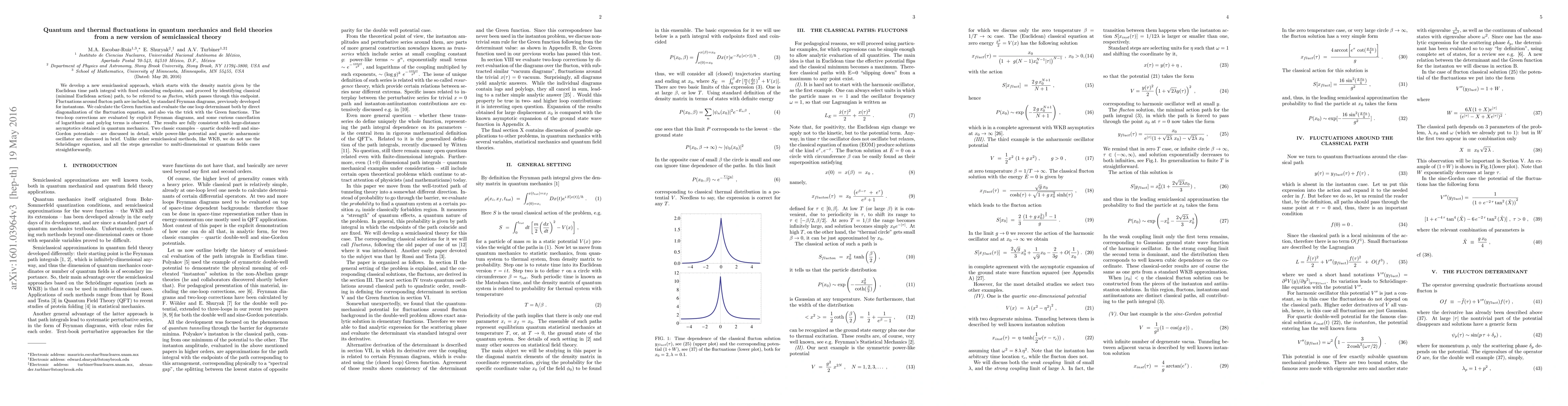 We develop a new semiclassical approach, which starts with the density matrix given by the Euclidean time path integral with fixed coinciding endpoints, and proceed by identifying classical (minimal Euclidean action) path, to be referred to as {\it flucton}, which passes through this endpoint. Fluctuations around flucton path are included, by standard Feynman diagrams, previously developed for instantons. We calculate the Green function and evaluate the one loop determinant both by direct diagonalization of the fluctuation equation, and also via the trick with the Green functions. The two-loop corrections are evaluated by explicit Feynman diagrams, and some curious cancellation of logarithmic and polylog terms is observed. The results are fully consistent with large-distance asymptotics obtained in quantum mechanics. Two classic examples -- quartic double-well and sine-Gordon potentials -- are discussed in detail, while power-like potential and quartic anharmonic oscillator are discussed in brief. Unlike other semiclassical methods, like WKB, we do not use the Schr\"{o}dinger equation, and all the steps generalize to multi-dimensional or quantum fields cases straightforwardly.