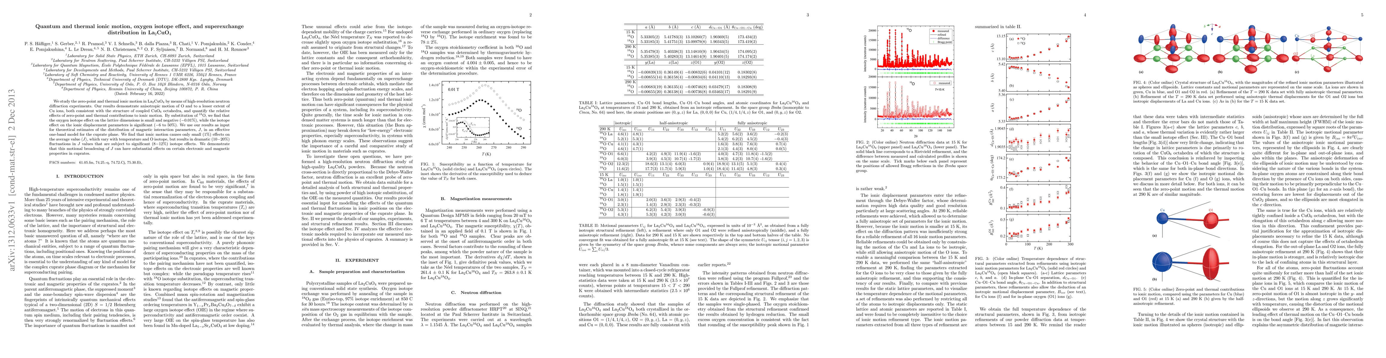 We study the zero-point and thermal ionic motion in La$_2$CuO$_4$ by means of high-resolution neutron diffraction experiments. Our results demonstrate anisotropic motion of O and to a lesser extent of Cu ions, both consistent with the structure of coupled CuO$_6$ octahedra, and quantify the relative effects of zero-point and thermal contributions to ionic motion. By substitution of $^{18}$O, we find that the oxygen isotope effect on the lattice dimensions is small and negative ($-0.01\%$), while the isotope effect on the ionic displacement parameters is significant ($-6$ to $50\%$). We use our results as input for theoretical estimates of the distribution of magnetic interaction parameters, $J$, in an effective one-band model for the cuprate plane. We find that ionic motion causes only small ($1\%$) effects on the average value $\langle J\rangle$, which vary with temperature and O isotope, but results in dramatic ($10$-$20\%$) fluctuations in $J$ values that are subject to significant ($8$-$12\%$) isotope effects. We demonstrate that this motional broadening of $J$ can have substantial effects on certain electronic and magnetic properties in cuprates.